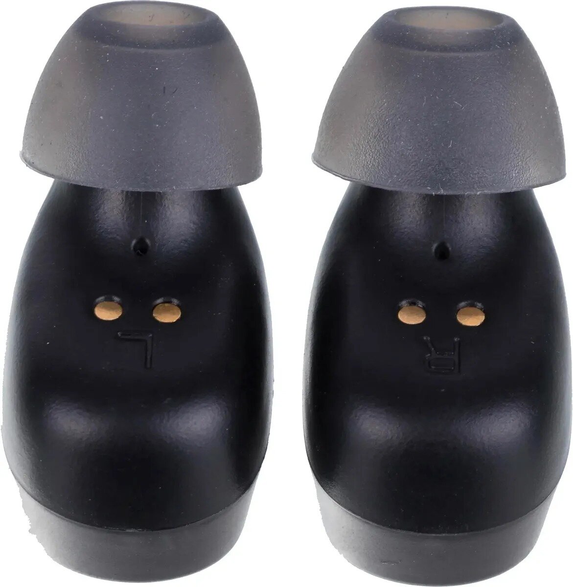 В целом ожидал лучшего конечно, повелся на отличные отзывы тут, и ожидания были завышены. Например у меня есть Sony MDR-AS800AP - вот лично для меня там звук лучше, но сравнивать их только по этому критерию не стоит, так как там разные диаметры мембран и крепление наушника более плотное и удобное, разное сопротивление. Заменил штатные резиночки на sony - теперь сидят гораздо приятнее, и стало больше расстояния до металлической защитной сетки. Штатные резинки в сечении как треугольник. И у них очень близкое расстояние до сеточки, она быстро будет пачкаться. А достать грязь за ней будет сложно. В этом плане при длинной конструкции звукопроводящей трубки вариант без защитной сетки мне нравится больше конечно, как в AS800AP. Но с нештатными резинками наушники перестают влезать в кейс. Интересный факт! попробуйте закрыть наушники руками по время использования... Дополнение: сходил на Арбат послушать конкурентов слушал Klipsch S1 - понравились, по звуку как мои Sony MDR-AS800AP, низкие хороши, но вот беда сидят плохо и цена почти 10 тр Klipsch T5 - примерно тоже самое догораздо дороже, тяжелый кейс Sony WF-1000XM3 сидят плохо, шупоподавление по этой причине показалось не очень Creative Outlier Gold - нестабильная связь JBL Reflect Flow - понравились сразу, низкие хороши BOWERS & WILKINS PI4 хорошие, по звуку даже наверное чуть лучше чем JBL и Klipsch но цена все портит, и опять таки там провод взял себе JBL Reflect Flow, аналогично в них есть функция прослушивания звуков окружающего мира Малышей Soul наверное оставлю, буду использовать иногда |