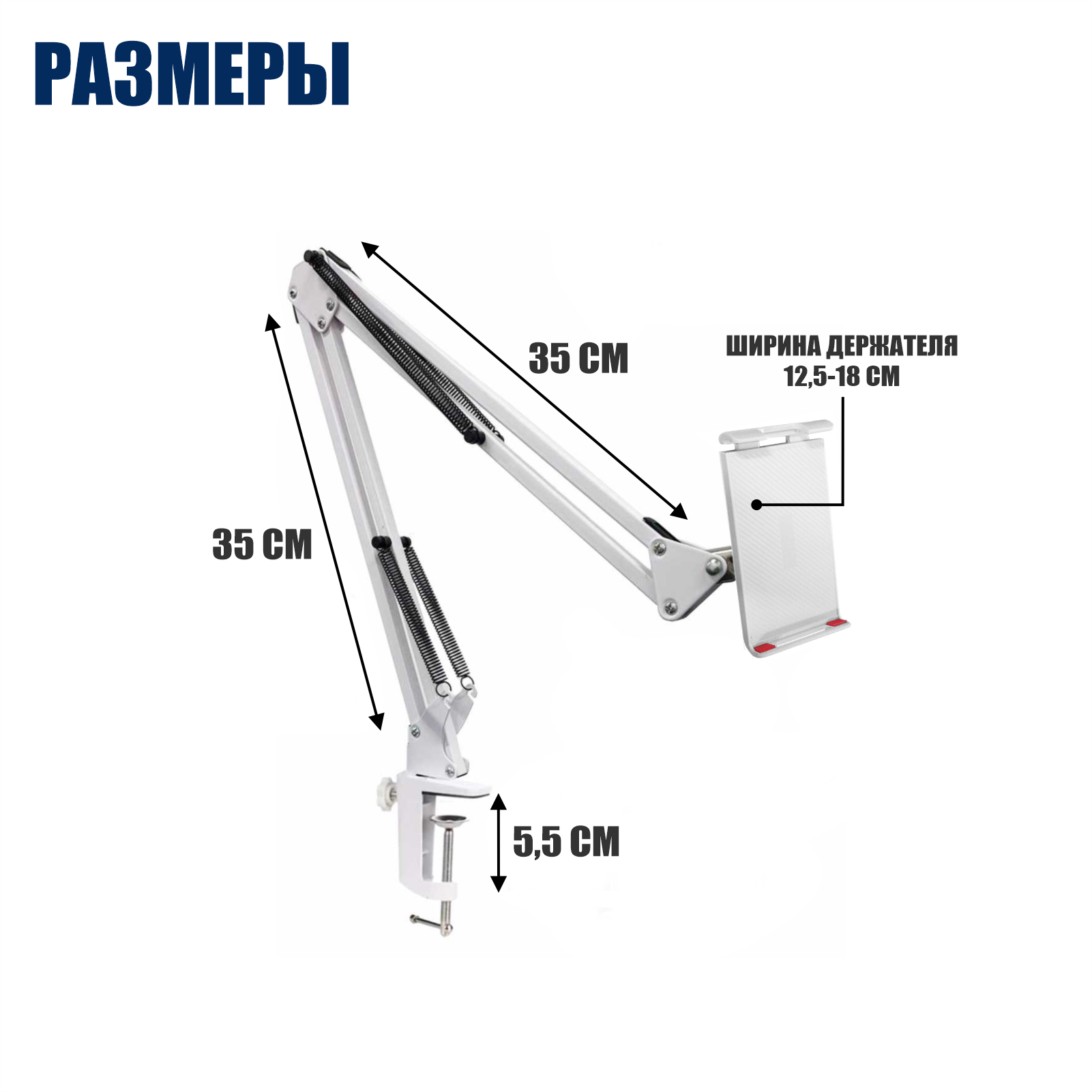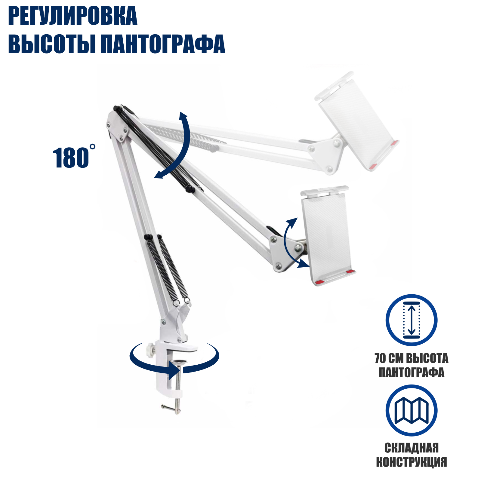 Держатель DP18-NBS-W для планшета шириной до 18 см на пантографе и усиленной струбцине, белый интересное: