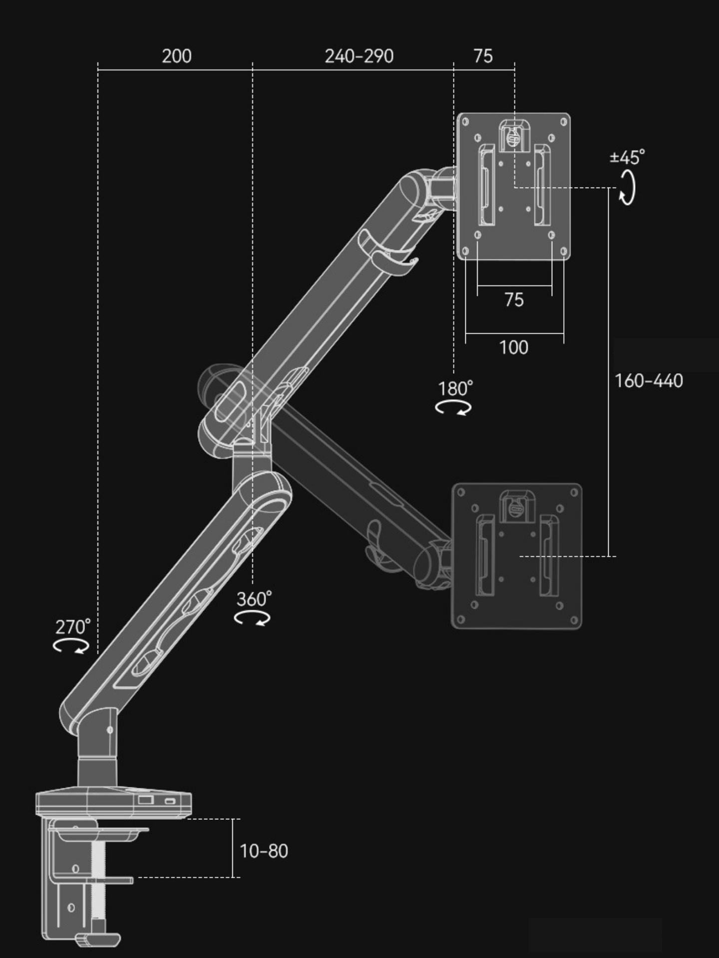Настольный кронштейн для двух мониторов NB North Bayou G35, 22-32" до 12 кг, матовый черный