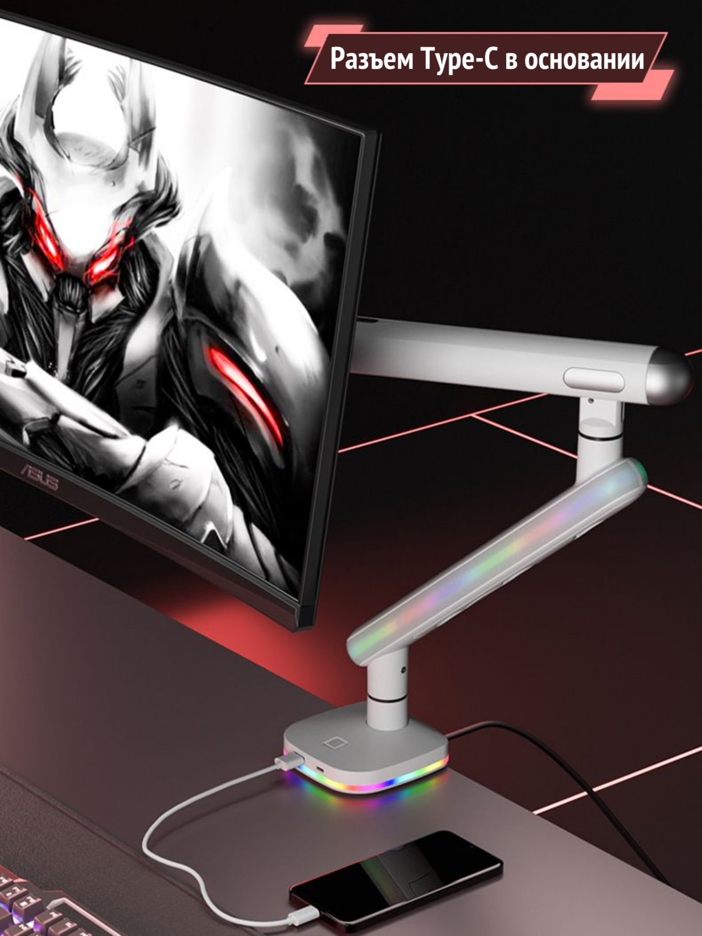 Настольный кронштейн для монитора Smart Monitor A8U-W, 17-38" до 10 кг, белый, с RGB-подсветкой интересное: