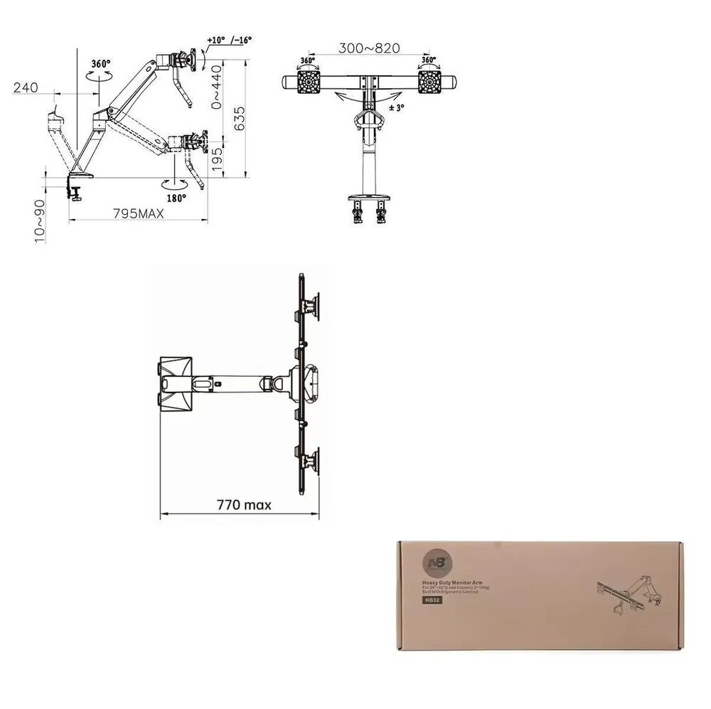 Настольный кронштейн для двух мониторов NB North Bayou G35, 22-32" до 12 кг, матовый черный