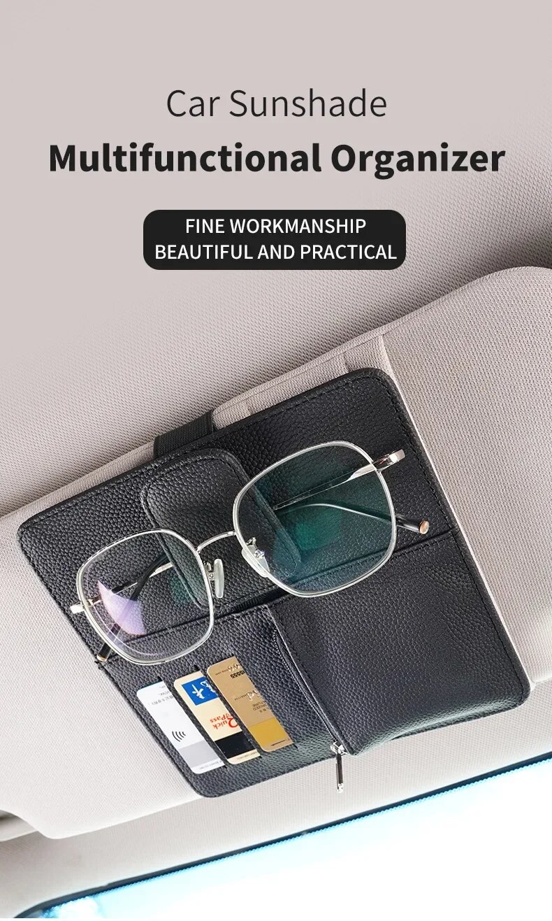 Сумка для хранения солнцезащитного козырька, с зажимом для очков, черный