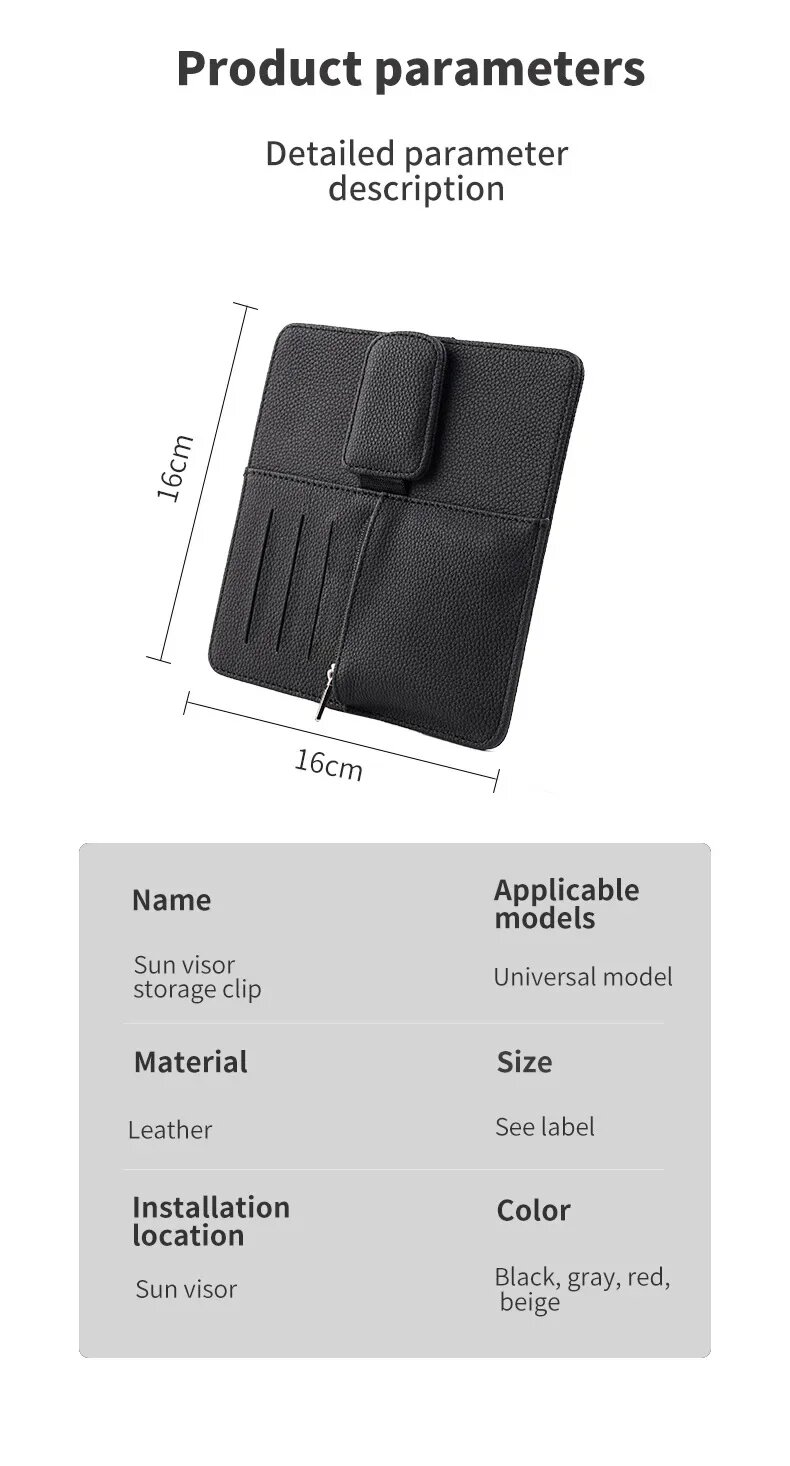 Сумка для хранения солнцезащитного козырька, с зажимом для очков, красная