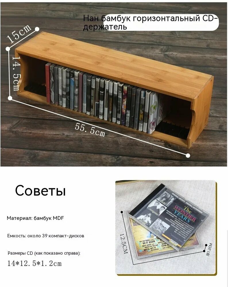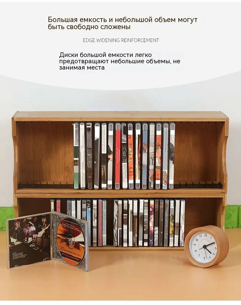 Стойка для CD-дисков, защитная подложка, настраиваемые разделители, светло-коричневая интересное: