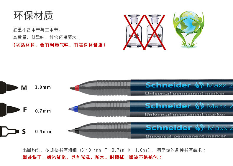 Ручка для компакт-дисков Schneider 220S, 222F, 224M, из прочной пленки, для ноутбука, цвет заправки 222F