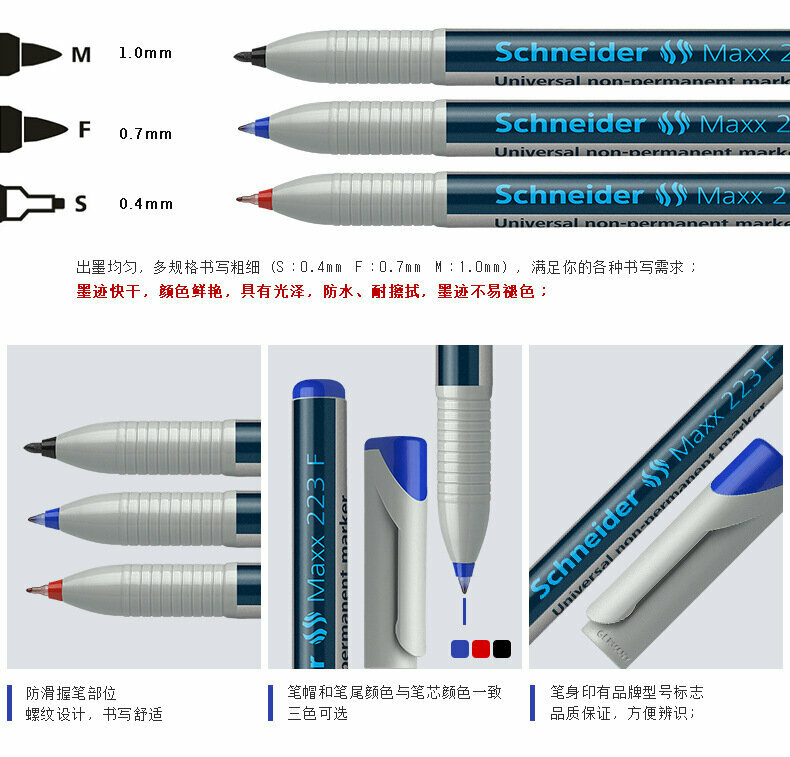 Ручка для компакт-дисков Schneider 220S, 222F, 224M, из прочной пленки, для ноутбука, цвет заправки 223F