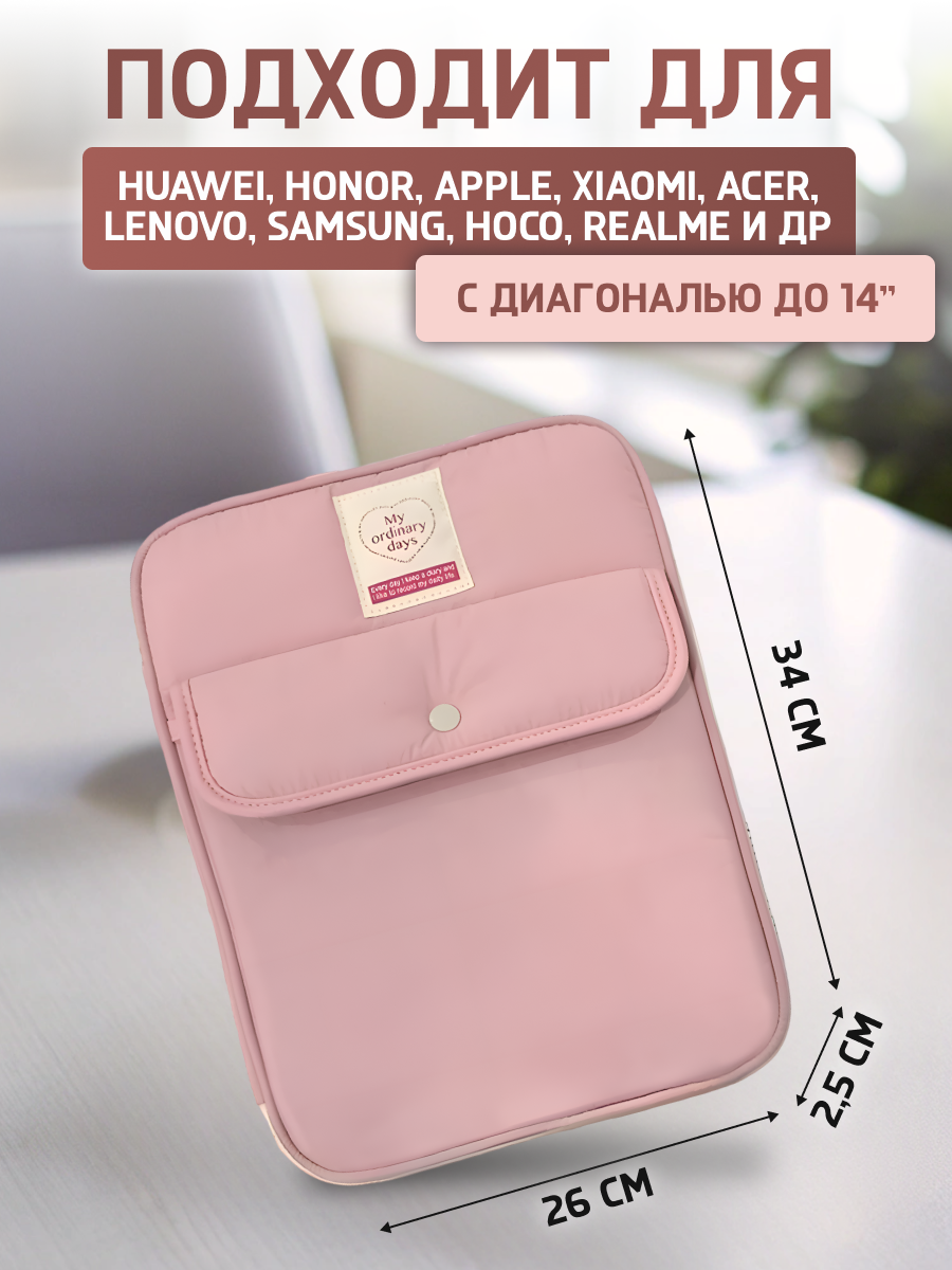 Чехол для планшета, ноутбука сумка, стёганная, мягкая розовая с сердечками