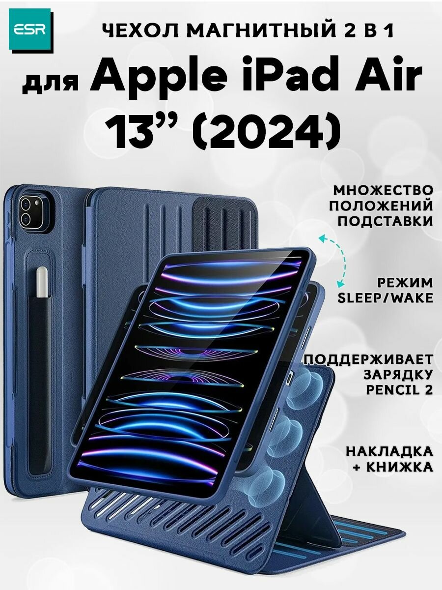 СохранитьЧехол книжка ESR Shift Magnetic Case, 2 в 1, с держателем для стилуса, для Apple iPad Air 13 (2024) - синий интересное: