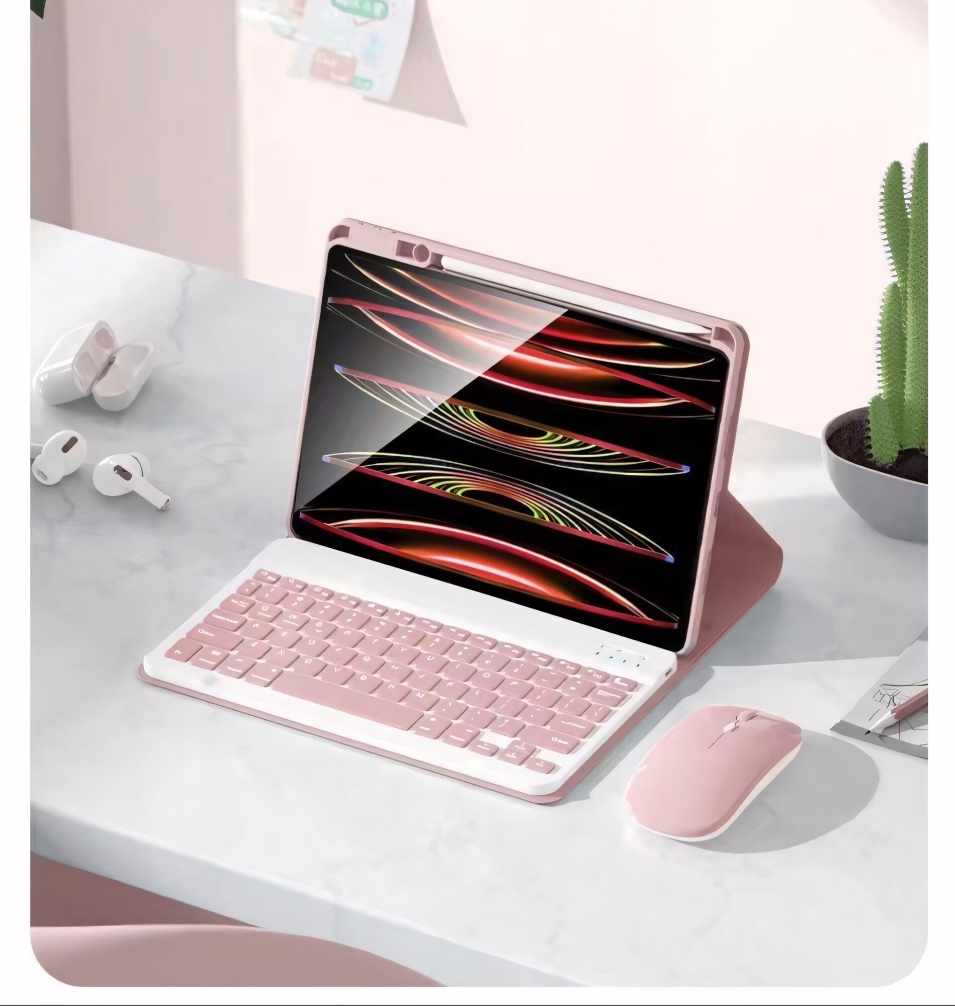 Чехол-книжка с клавиатурой и мышью для iPad Pro (2024) 11", розовый интересное: