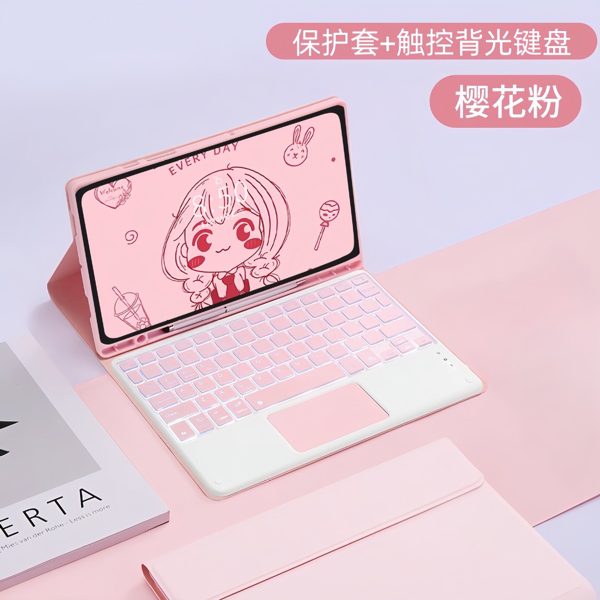 Чехол-клавиатура S9FE, для Samsung Tab A8, вишнево-розовый
