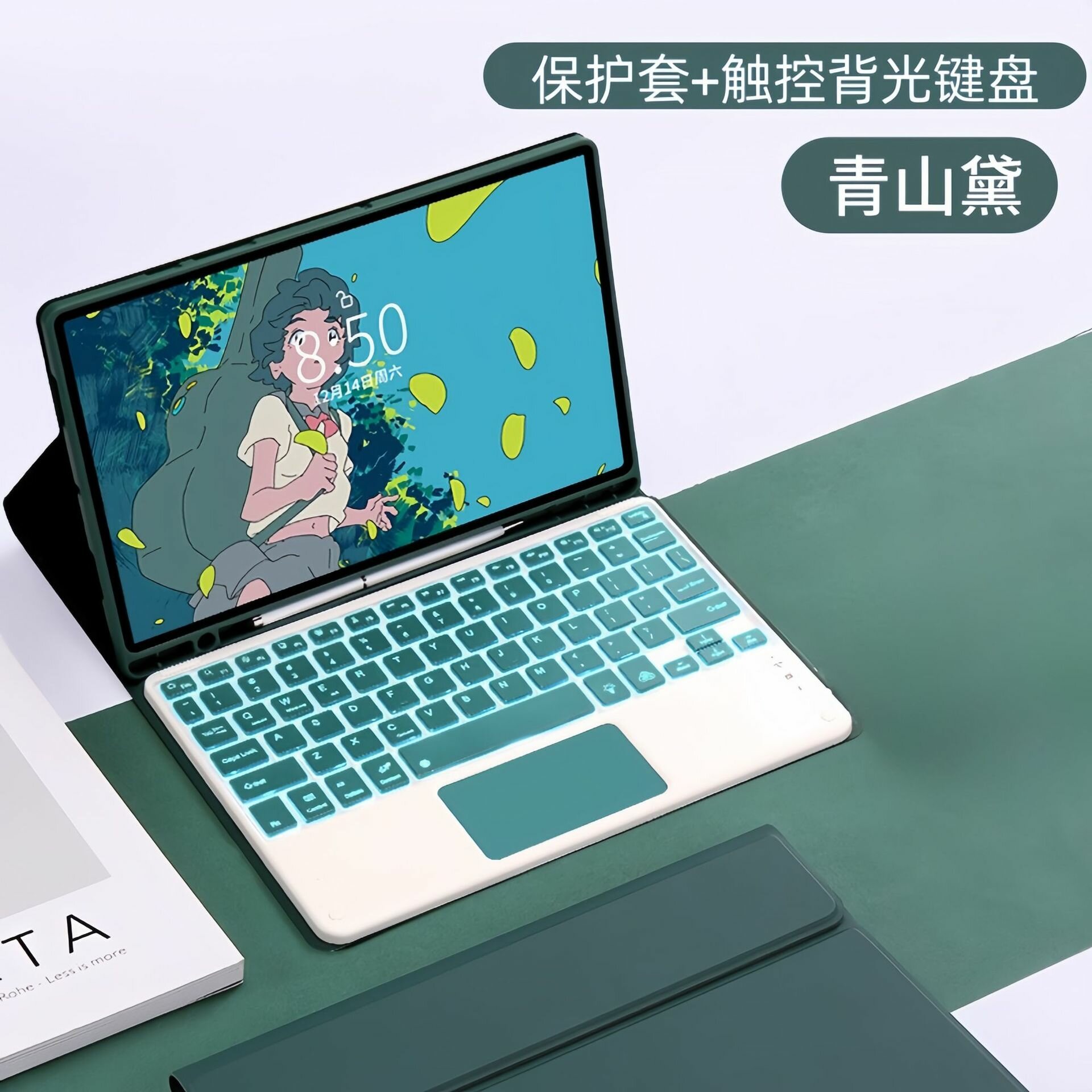 Чехол-клавиатура S9FE, для Samsung Tab A7, мятно-зелёный