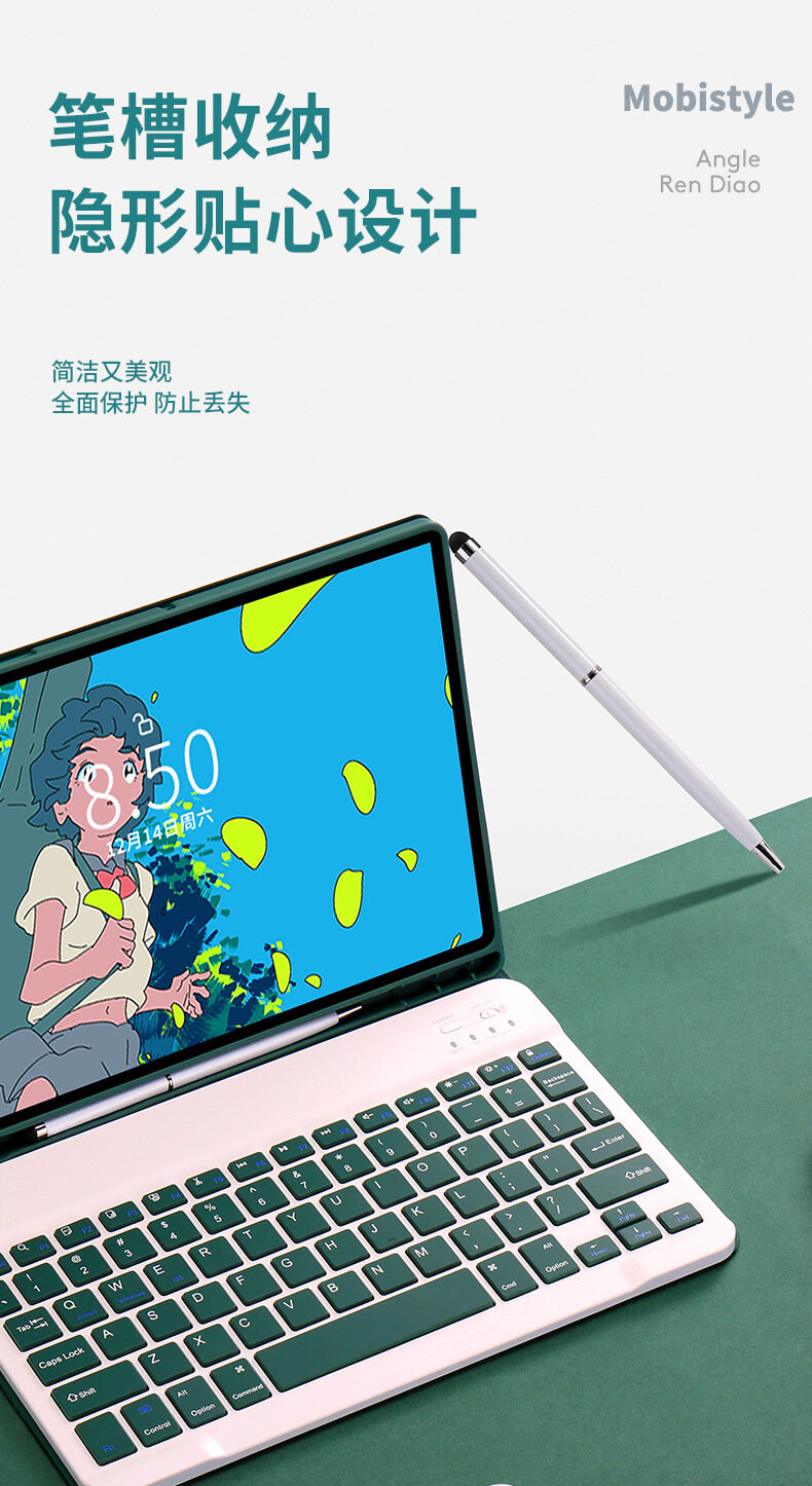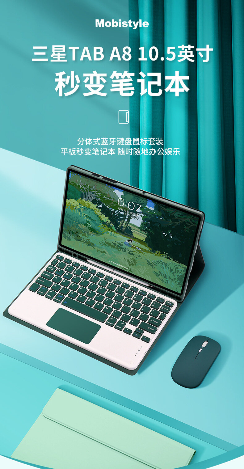 Чехол-клавиатура S9FE, для Samsung Tab A7, мятно-зелёный