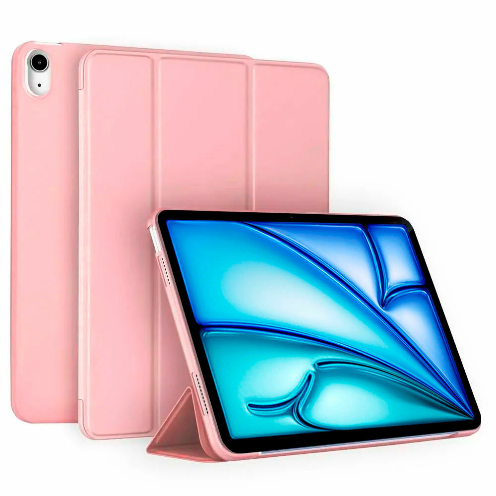 Купить Чехол на Apple iPad Air 11 2025 (M3), Air 11 2024 (M2), Air 5 2022, Air 4 2020, из мягкого силикона, трансформируется в подставку (пудровый)