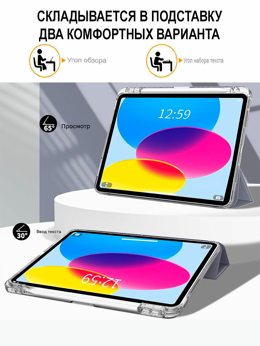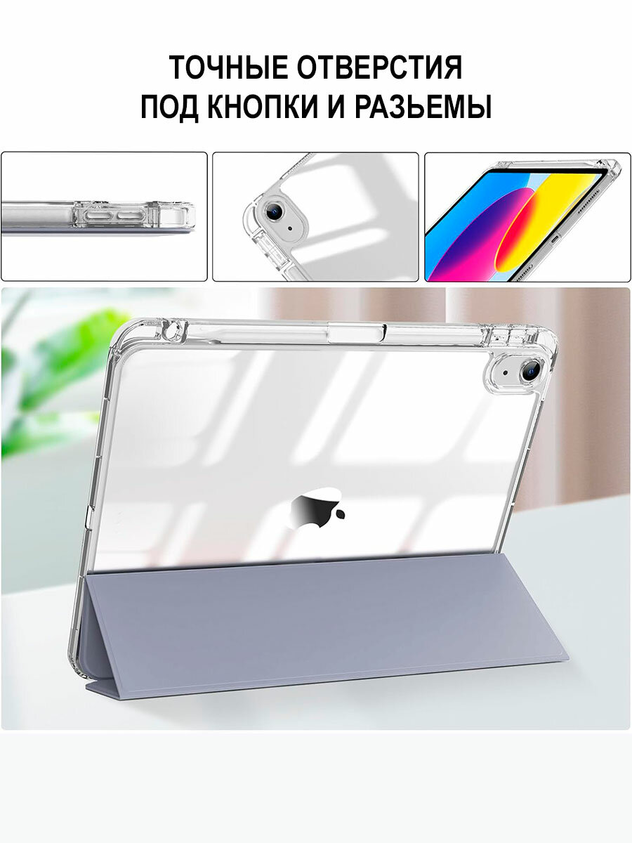 Чехол на Apple iPad Air 11 2025 (M3), Air 11 2024 (M2), Air 5 2022, Air 4 2020, из мягкого силикона, трансформируется в подставку (дымчато-фиолетовый)