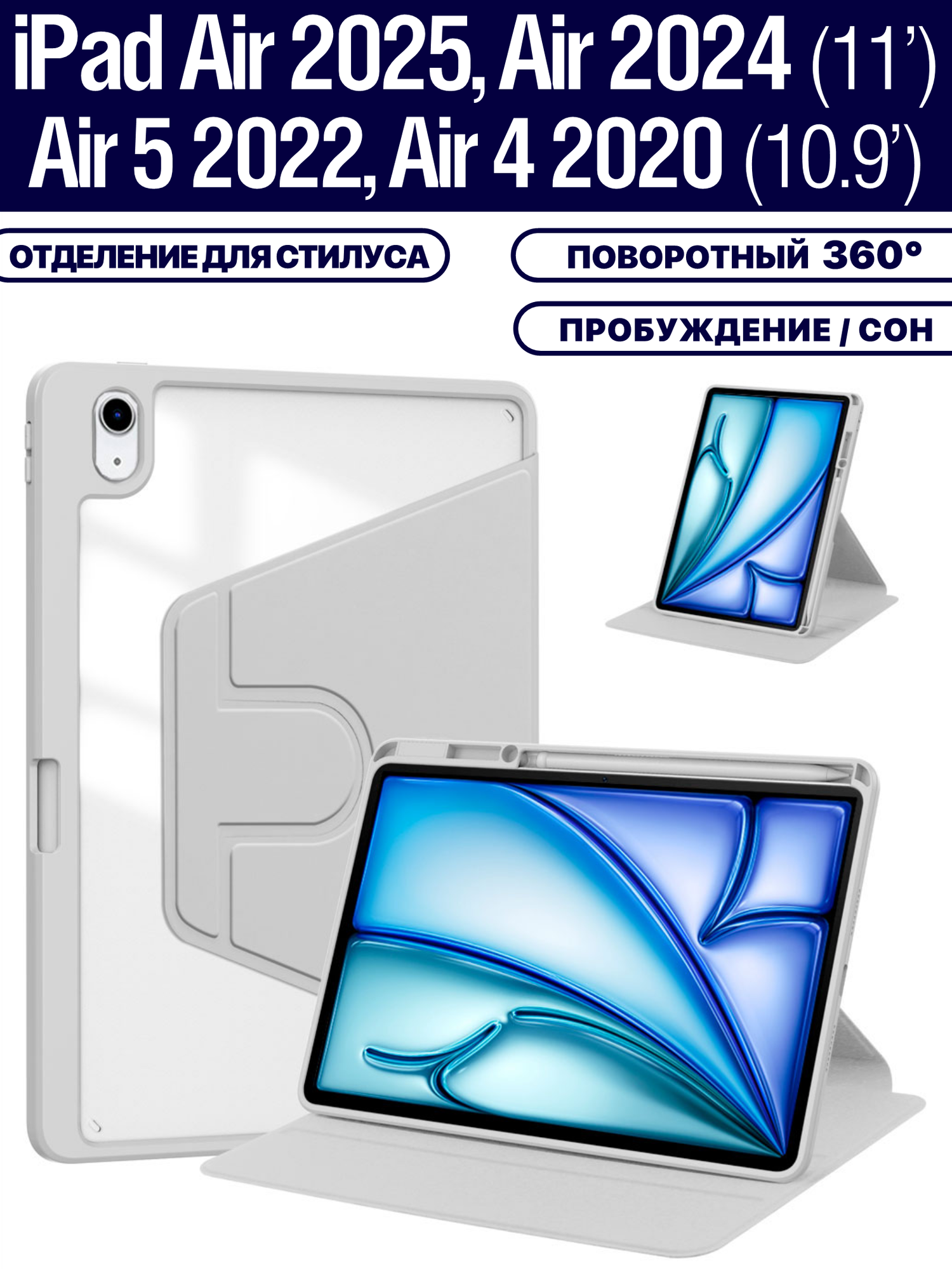 СохранитьЧехол на Apple iPad Air 11 2025 (M3), Air 11 2024 (M2), Air 5 2022, Air 4 2020, микрофибра, держатель для стилуса, поворотный 360 градусов (серый) интересное: