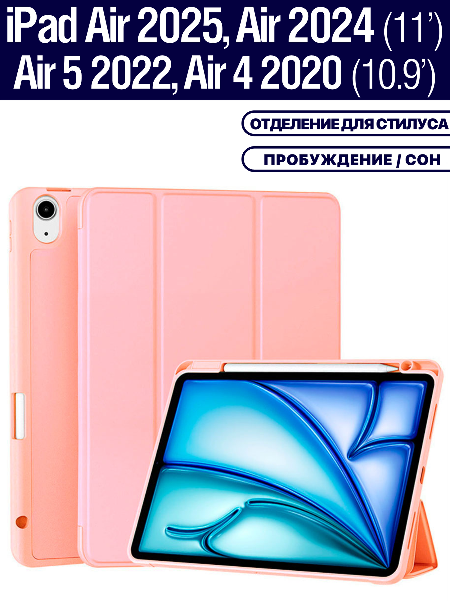 СохранитьЧехол на Apple iPad Air 11 2025 (M3), Air 11 2024 (M2), Air 5 2022, Air 4 2020, держатель для стилуса (пудровый) интересное: