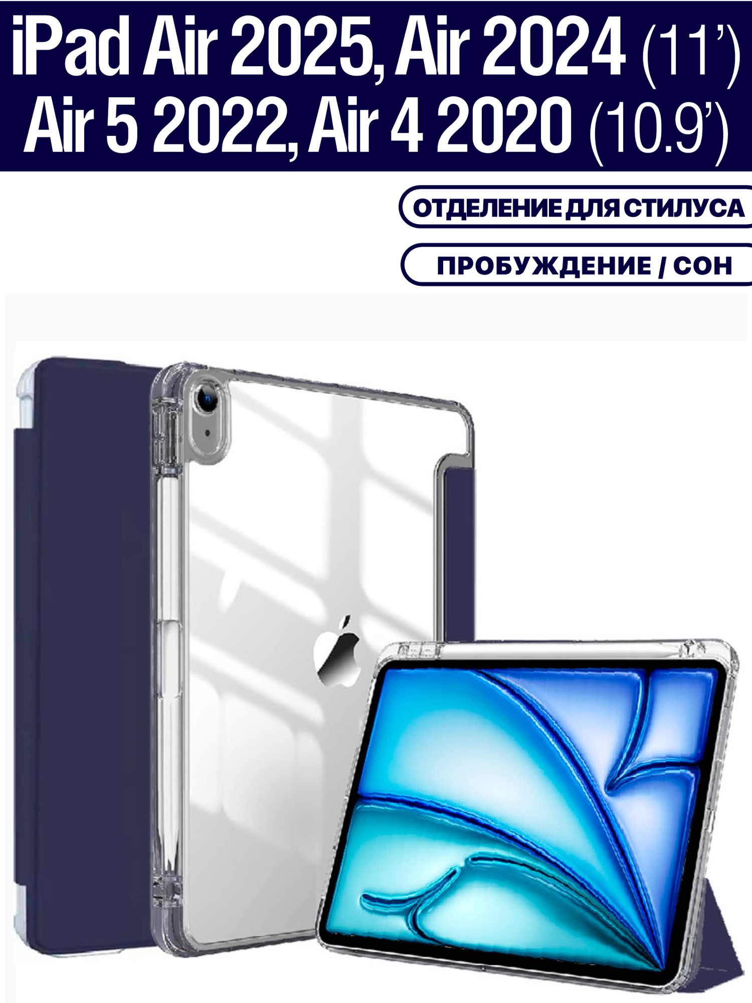 Чехол на Apple iPad Air 11 2025 (M3), Air 11 2024 (M2), Air 5 2022, Air 4 2020, держатель для стилуса (темно-синий)