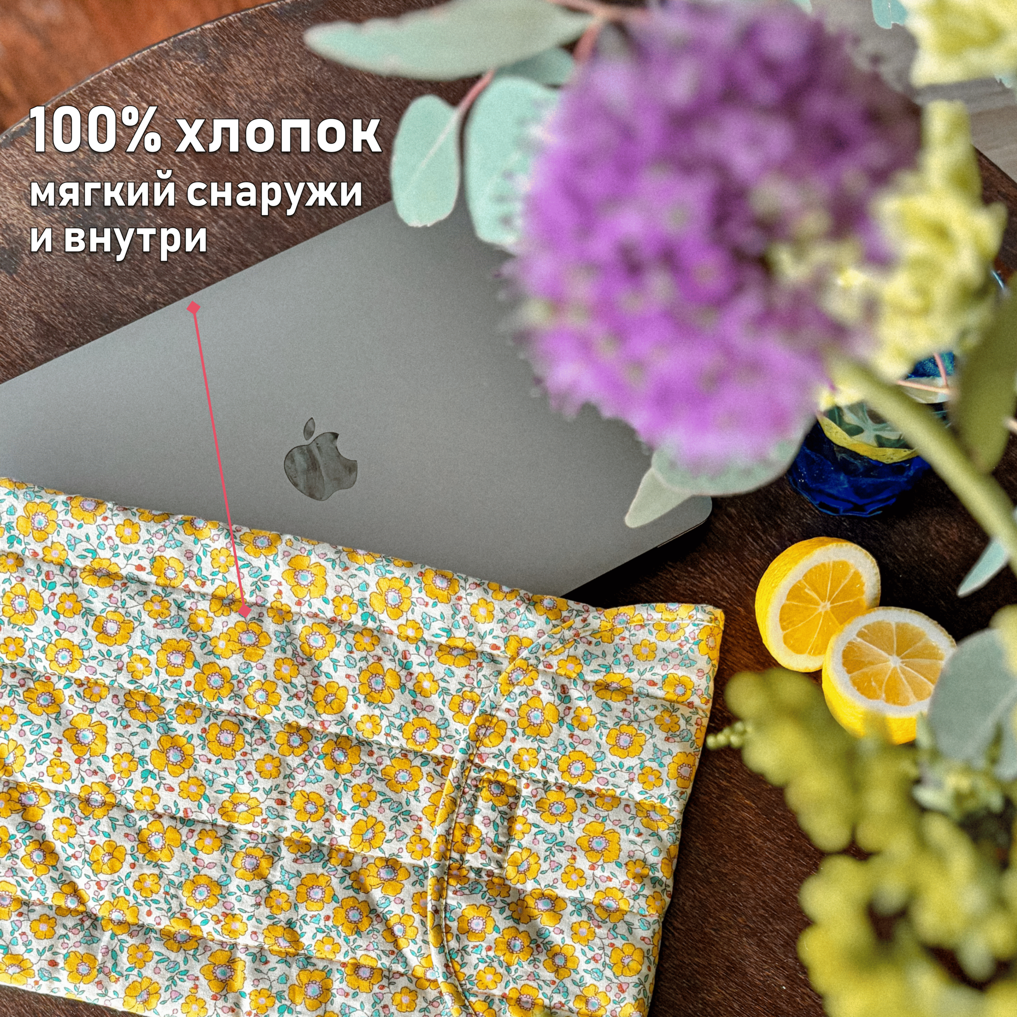 Чехол для ноутбука и планшета 13 - 14" / Сумка для ноутбука женская в цветочек желтый интересное: