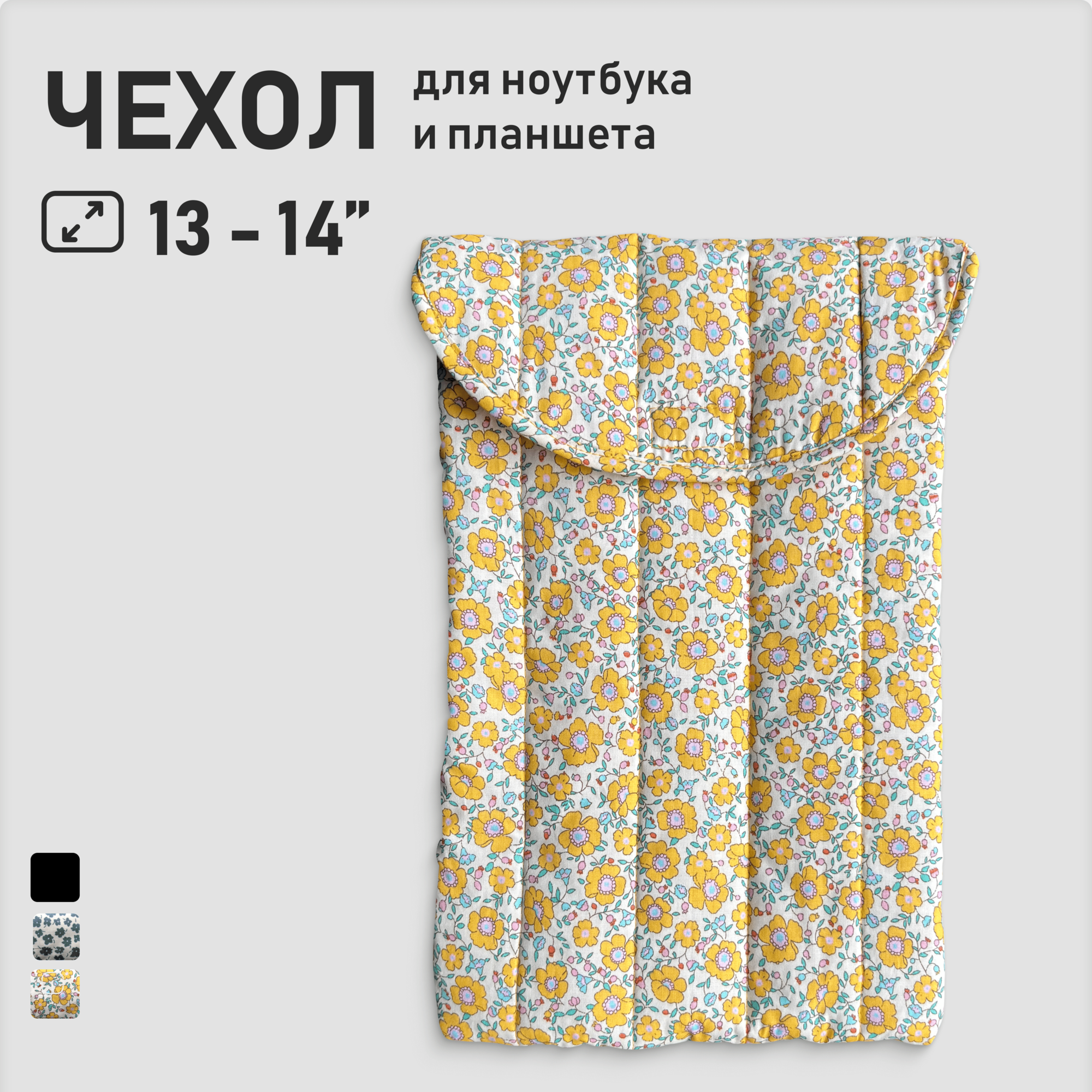 Купить Чехол для ноутбука и планшета 13 - 14" / Сумка для ноутбука женская в цветочек желтый