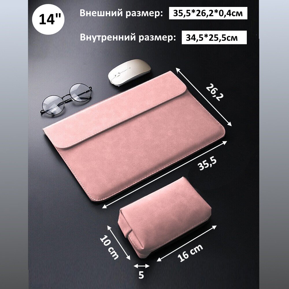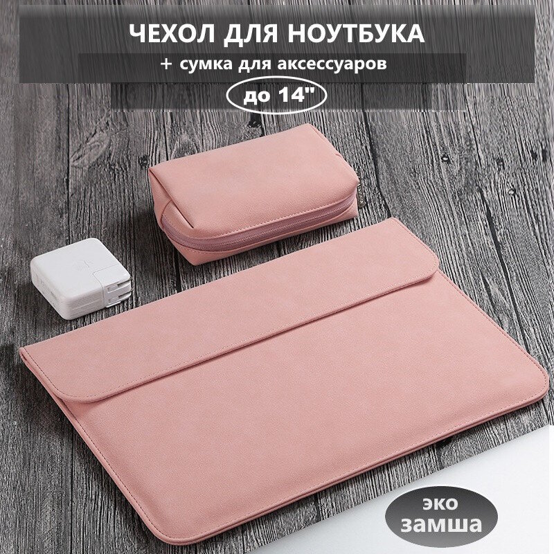 Чехол для макбука, ноутбука до 14" из эко-замши, с сумкой для аксессуаров, для MacBook Pro 14, Розовый интересное: