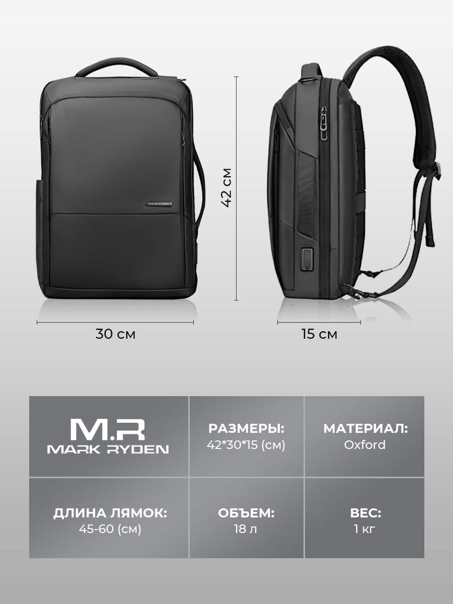 Купить Рюкзак Mark Ryden Urban, для ноутбука, объем 18 л, USB-разъем, водоотталкивающий, подарок мужчине, подарок мужу