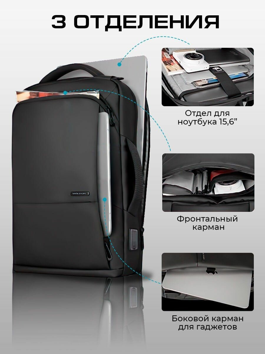 Рюкзак для ноутбука 15,6 Mark Ryden UNI мужской/женский 20л. Черный школьный портфель с USB для подростков. Подарок мужчине , подарок мужу