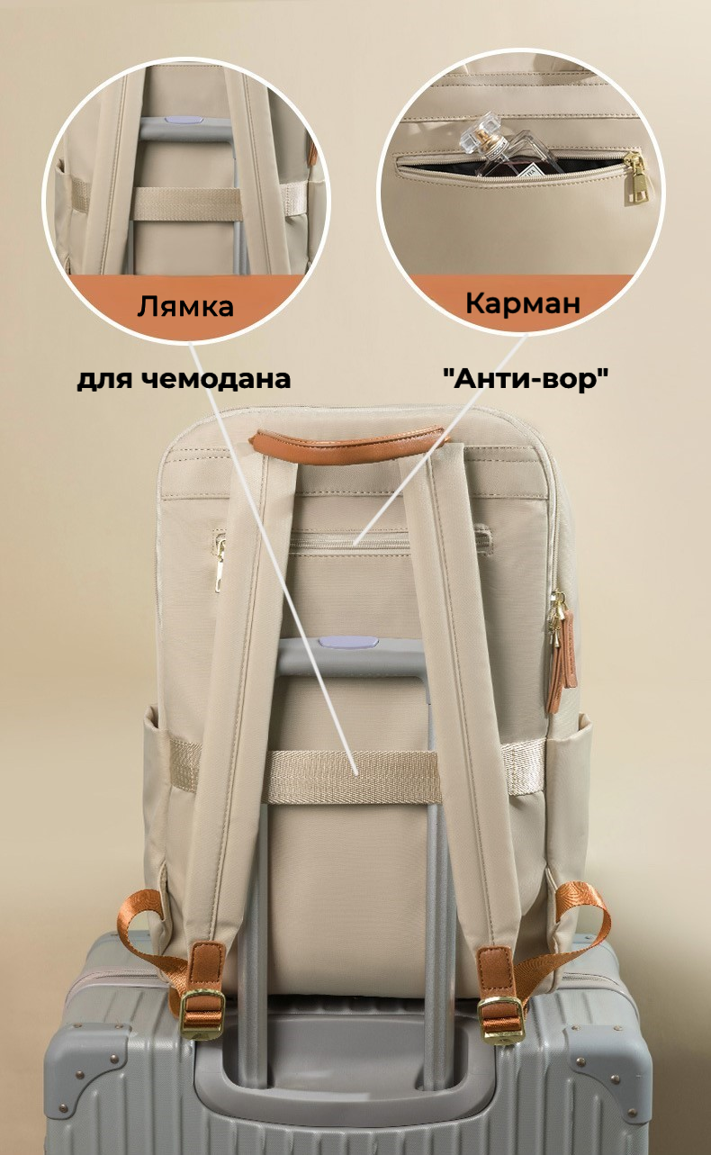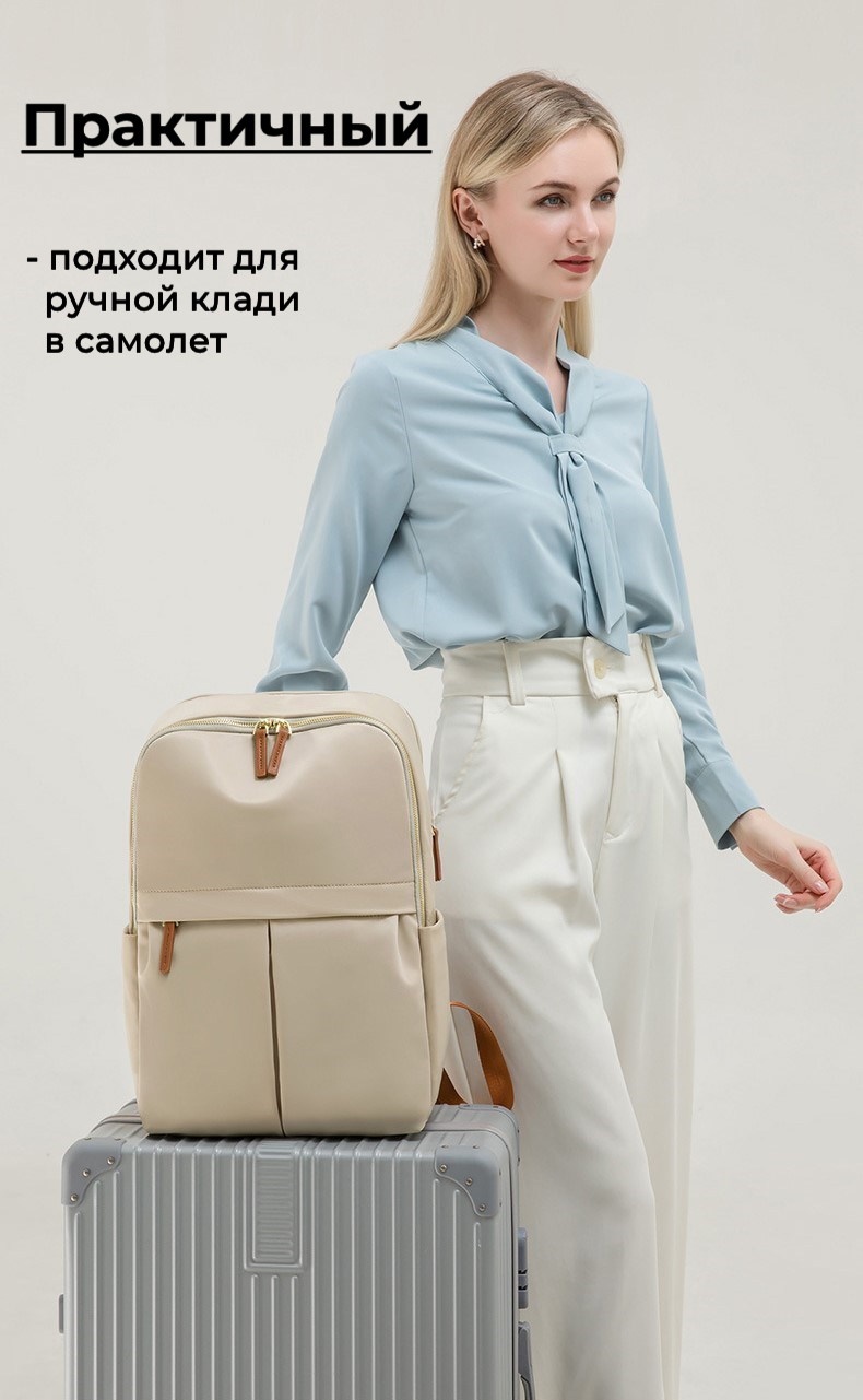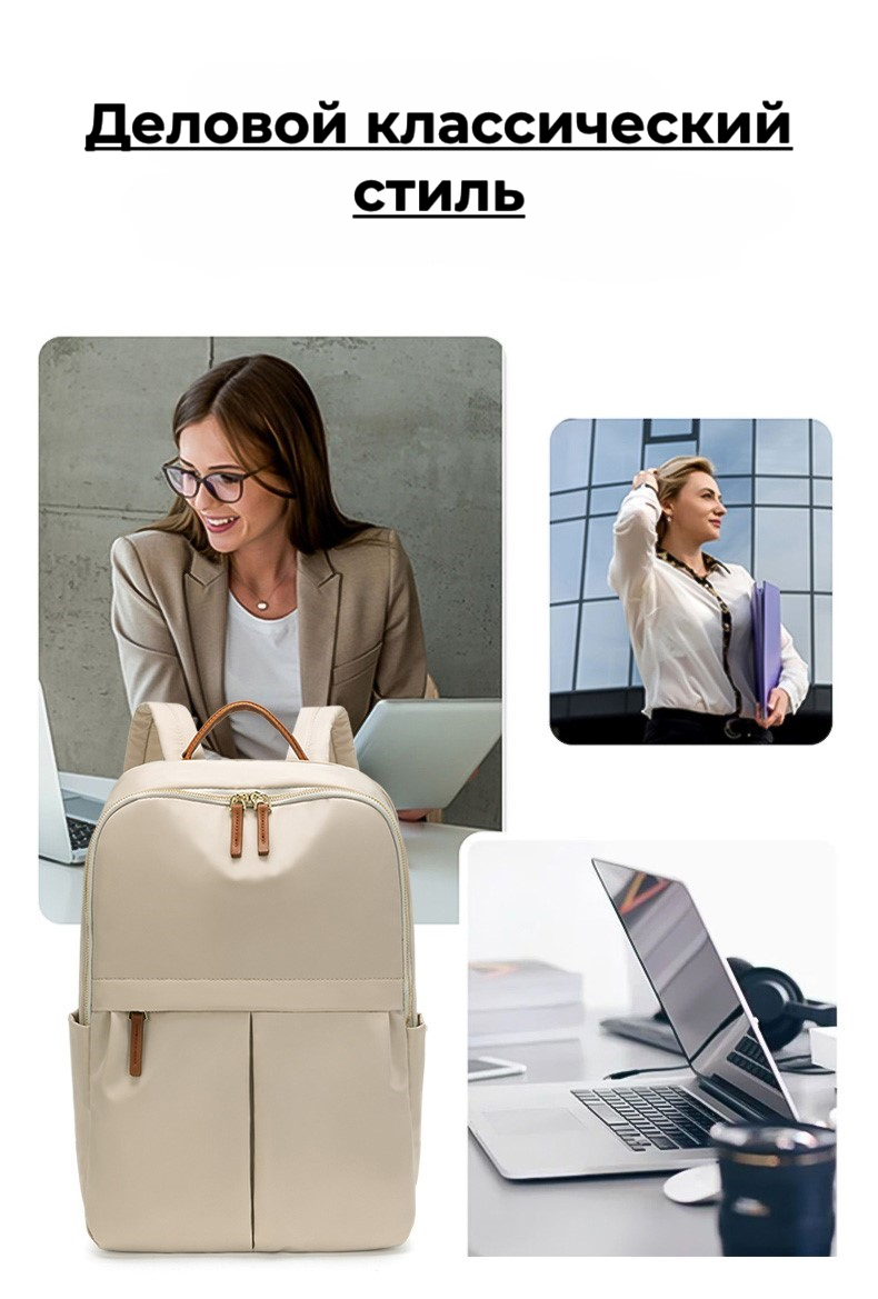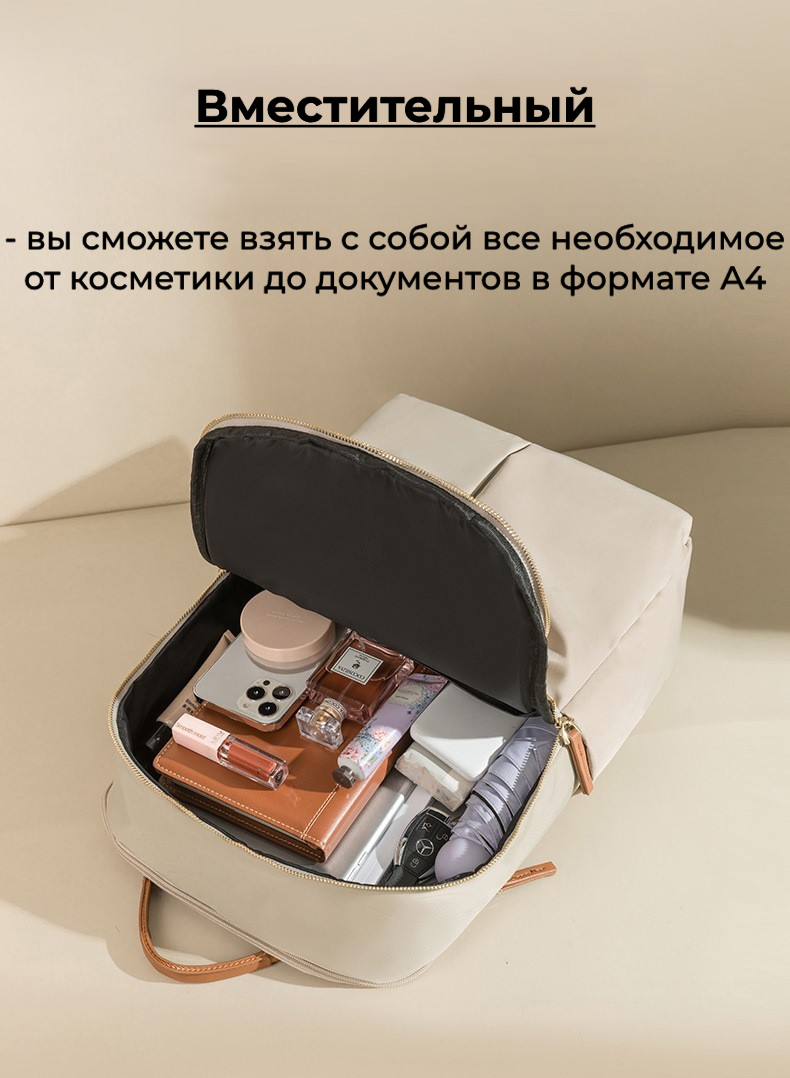 Рюкзак женский городской из ткани, 17 литров, для ноутбука, бежевый интересное: