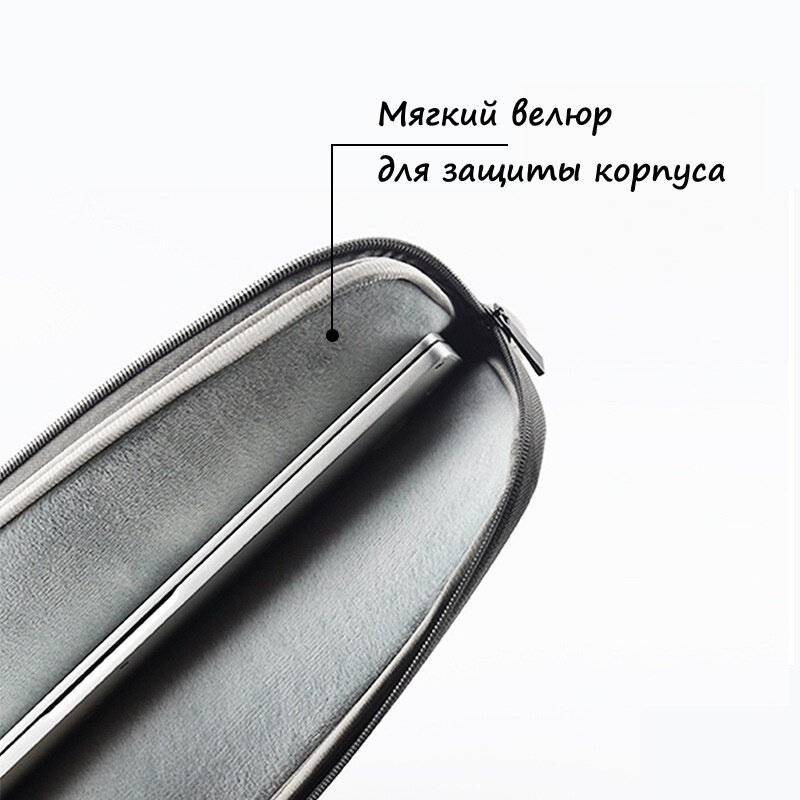 Чехол папка для ноутбука до 14.1", для Макбука, планшета замшевый с велюровой подкладкой, Темно-серый