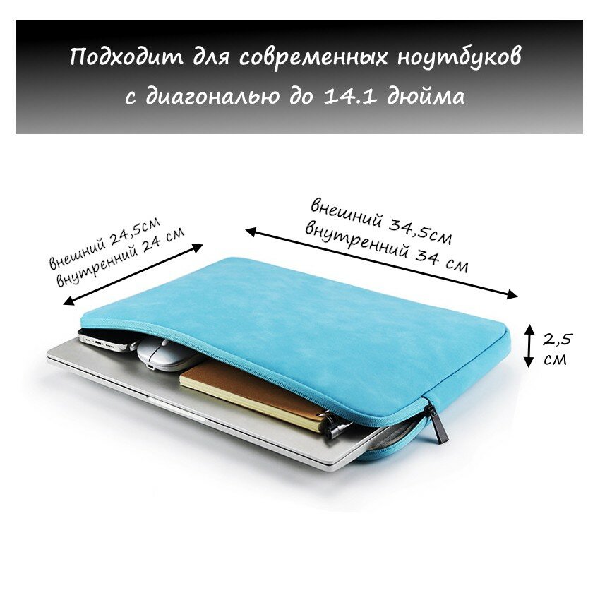 Чехол папка для ноутбука до 14.1", для Макбука, планшета замшевый с велюровой подкладкой, Голубой интересное: