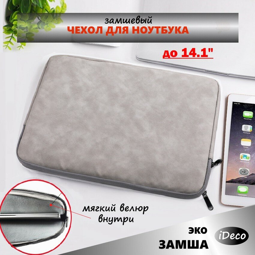 Чехол папка для ноутбука до 14.1", для Макбука, планшета замшевый с велюровой подкладкой, Светло-серый интересное: