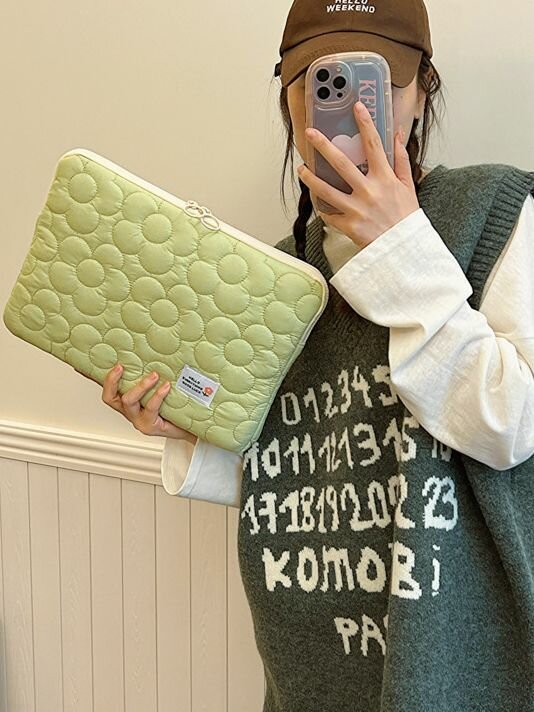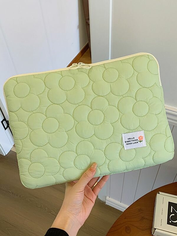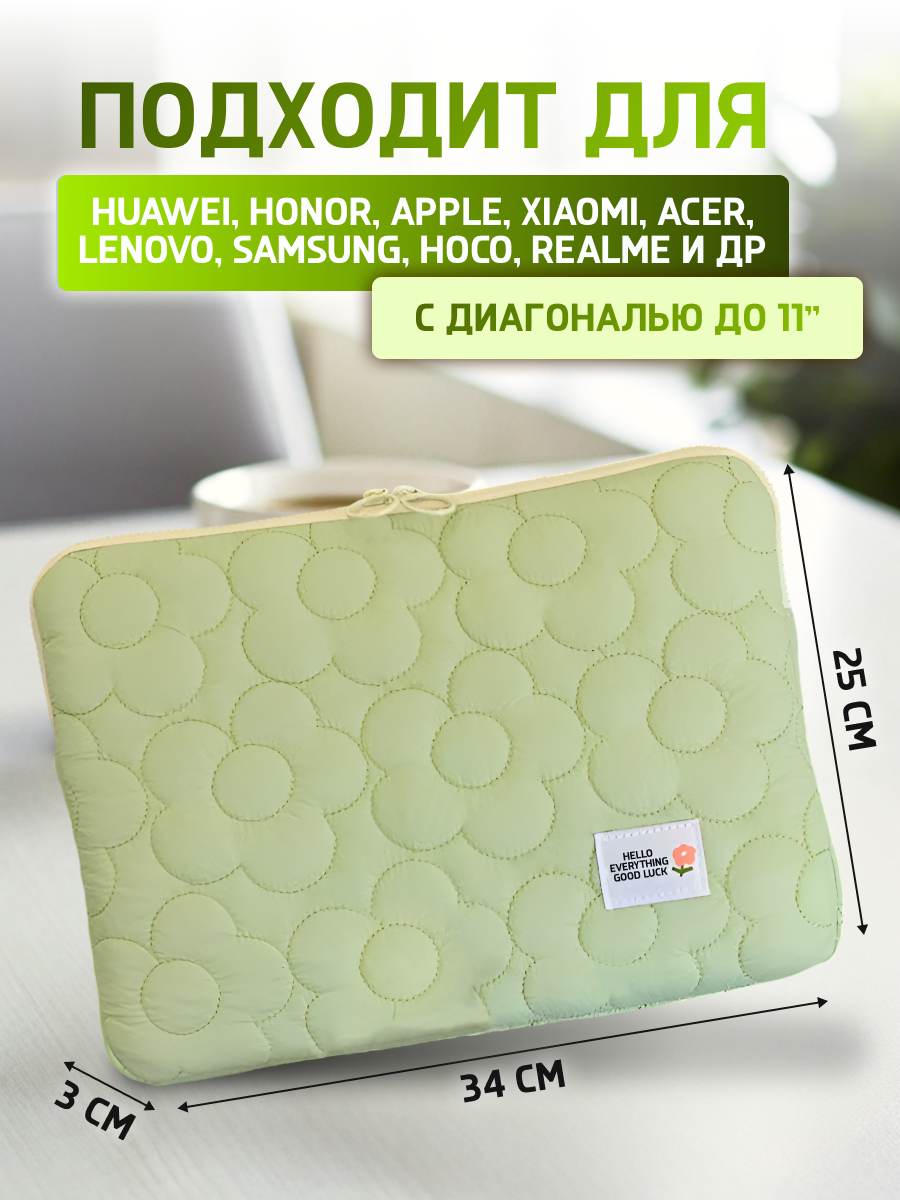 СохранитьЧехол для планшета, ноутбука сумка, стёганная, мягкая зелёная с цветочками интересное: