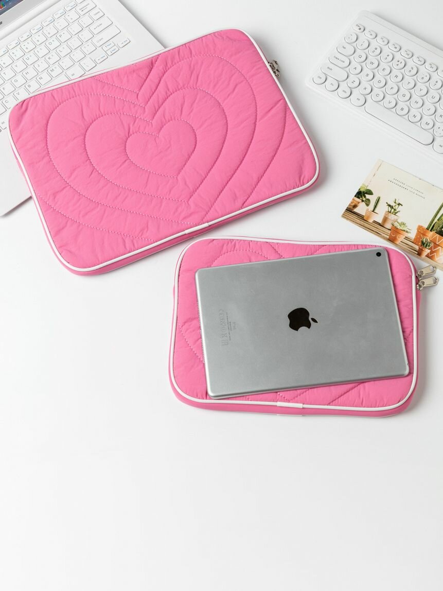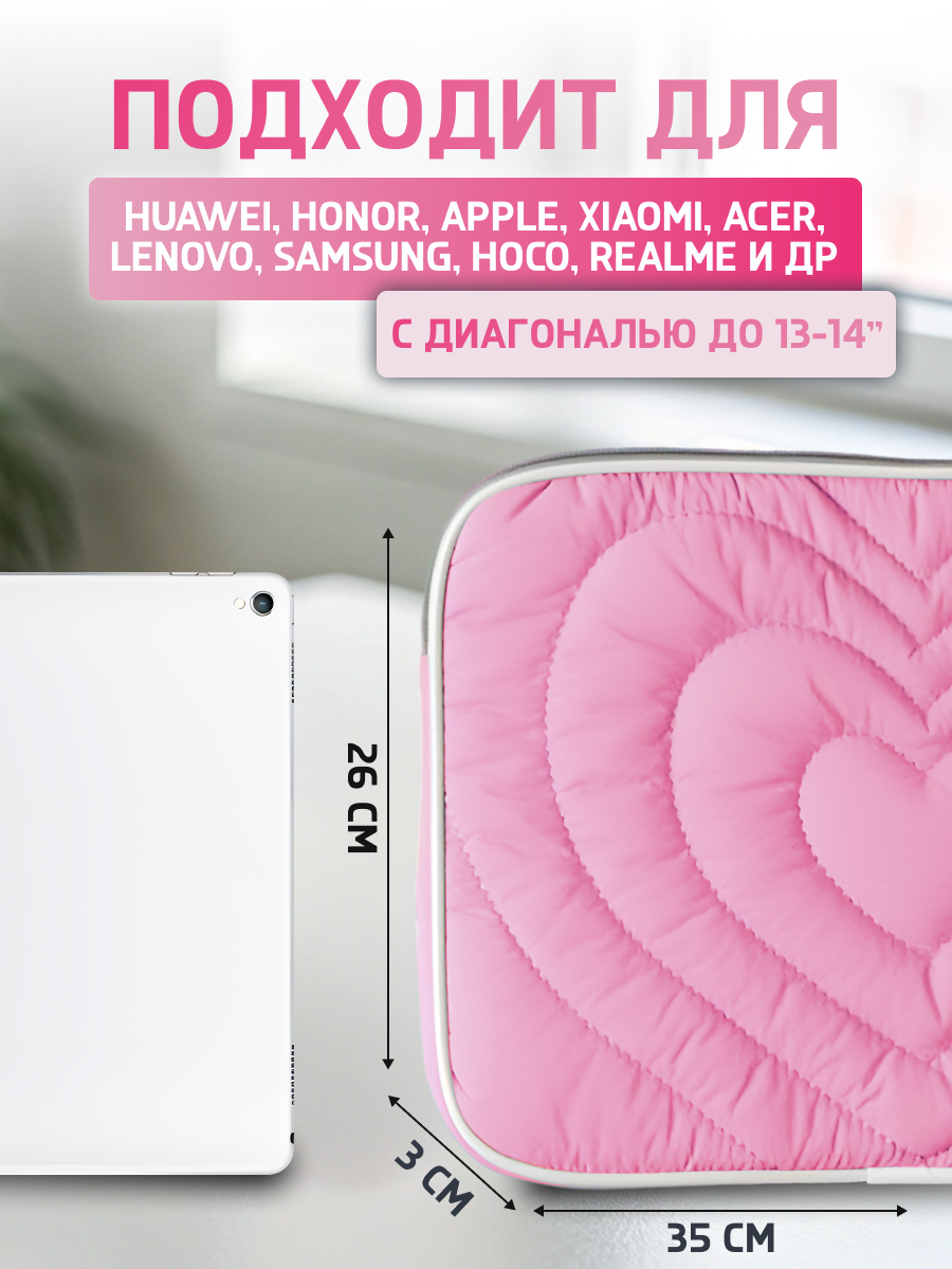 СохранитьЧехол для планшета, ноутбука сумка, стёганная, мягкая розовая с сердечками интересное: