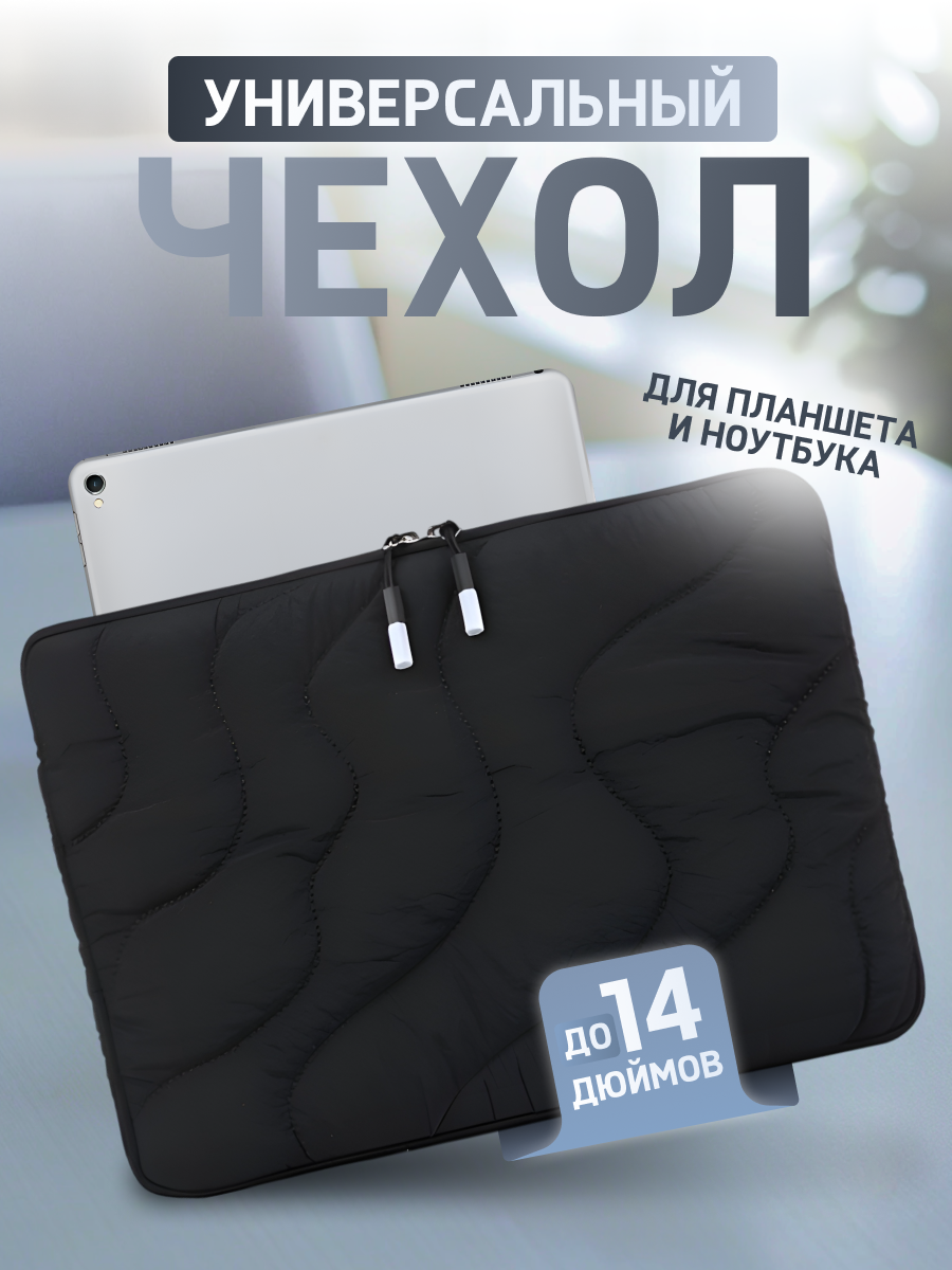 Чехол для ноутбука, планшета, сумка, стёганная, мягкая чёрная интересное: