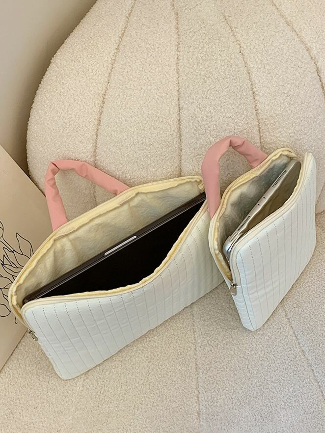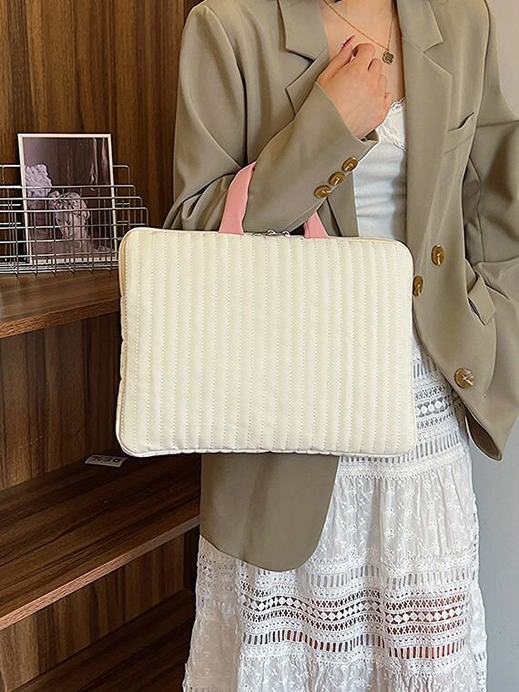 Чехол для планшета, ноутбука сумка, стёганная, мягкая белая с ручкой интересное: