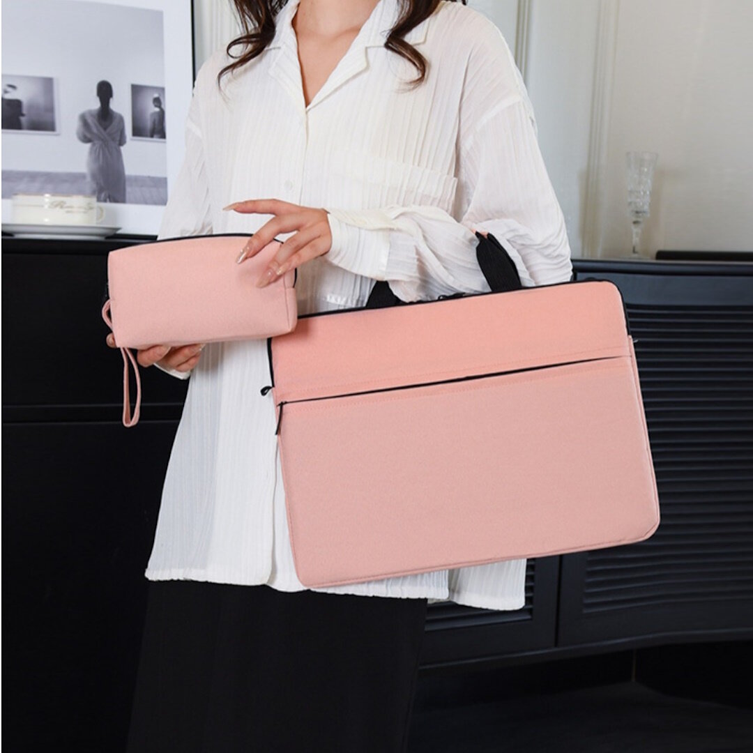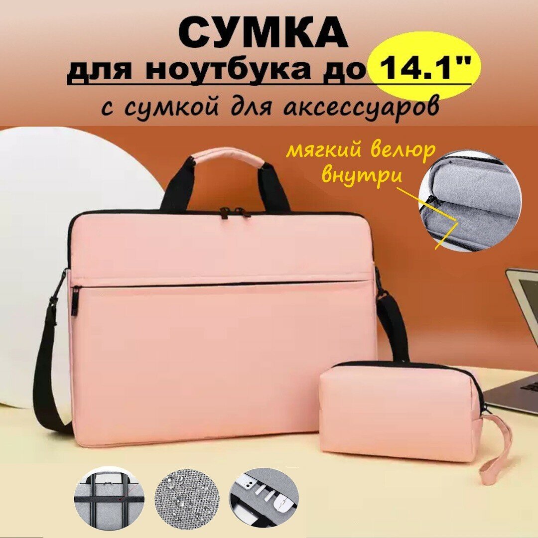 Купить Сумка для ноутбука до 14.1" с ремнем, c сумкой для аксессуаров, с мягкой подкладкой, чехол для макбука ноутбука с ручкой, Светло-розовая