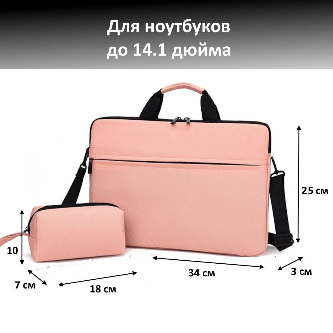 СохранитьСумка для ноутбука до 14.1" с ремнем, c сумкой для аксессуаров, с мягкой подкладкой, чехол для макбука ноутбука с ручкой, Светло-розовая интересное: