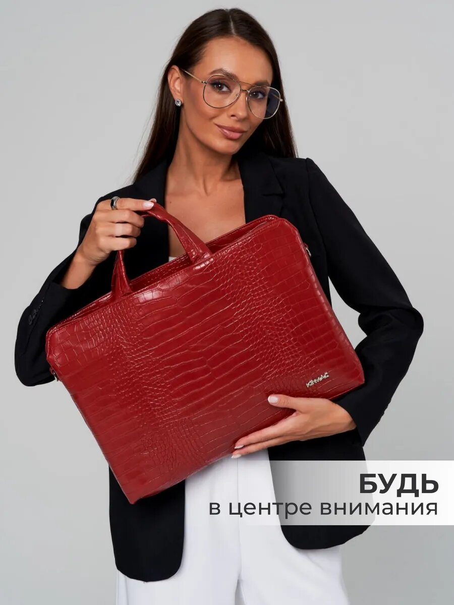 Сумка для ноутбука KINMAC 13 и 14 дюймов с ремнем не плечо и 3 отделениями (Красная экокожа) интересное: