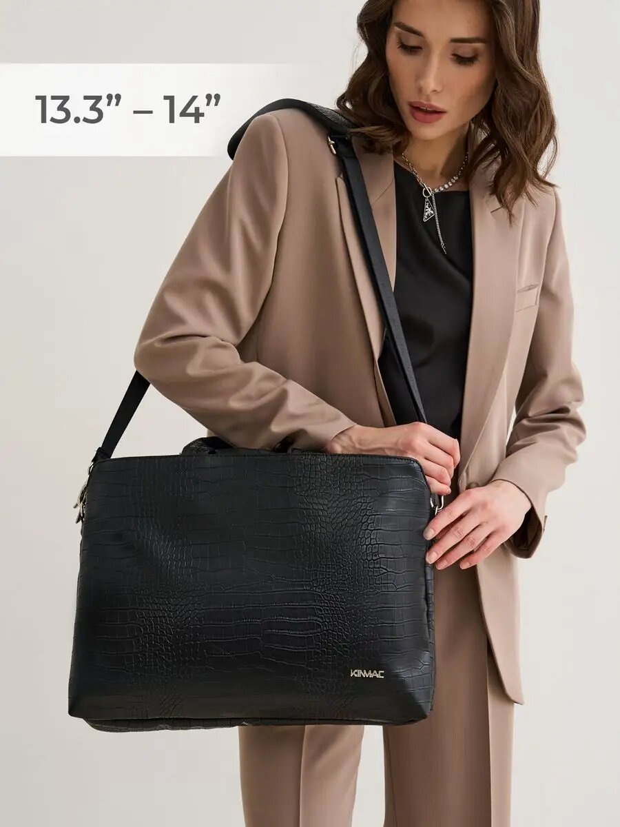Сумка для ноутбука KINMAC 13 и 14 дюймов с ремнем не плечо и 3 отделениями (Черная экокожа) интересное: