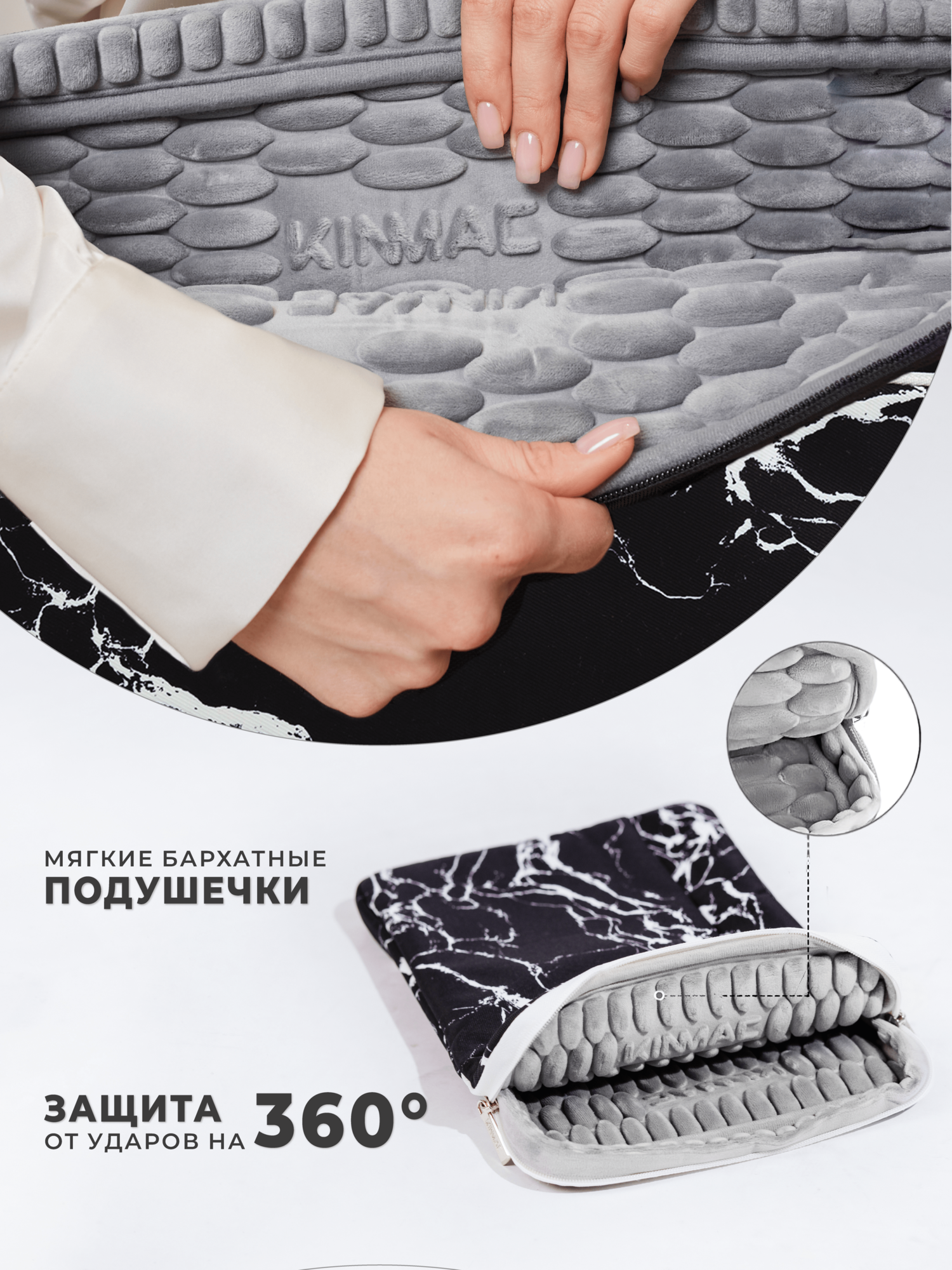 Чехол для ноутбука 14, 15.6 и 16 дюймов KINMAC (черный мрамор) интересное: