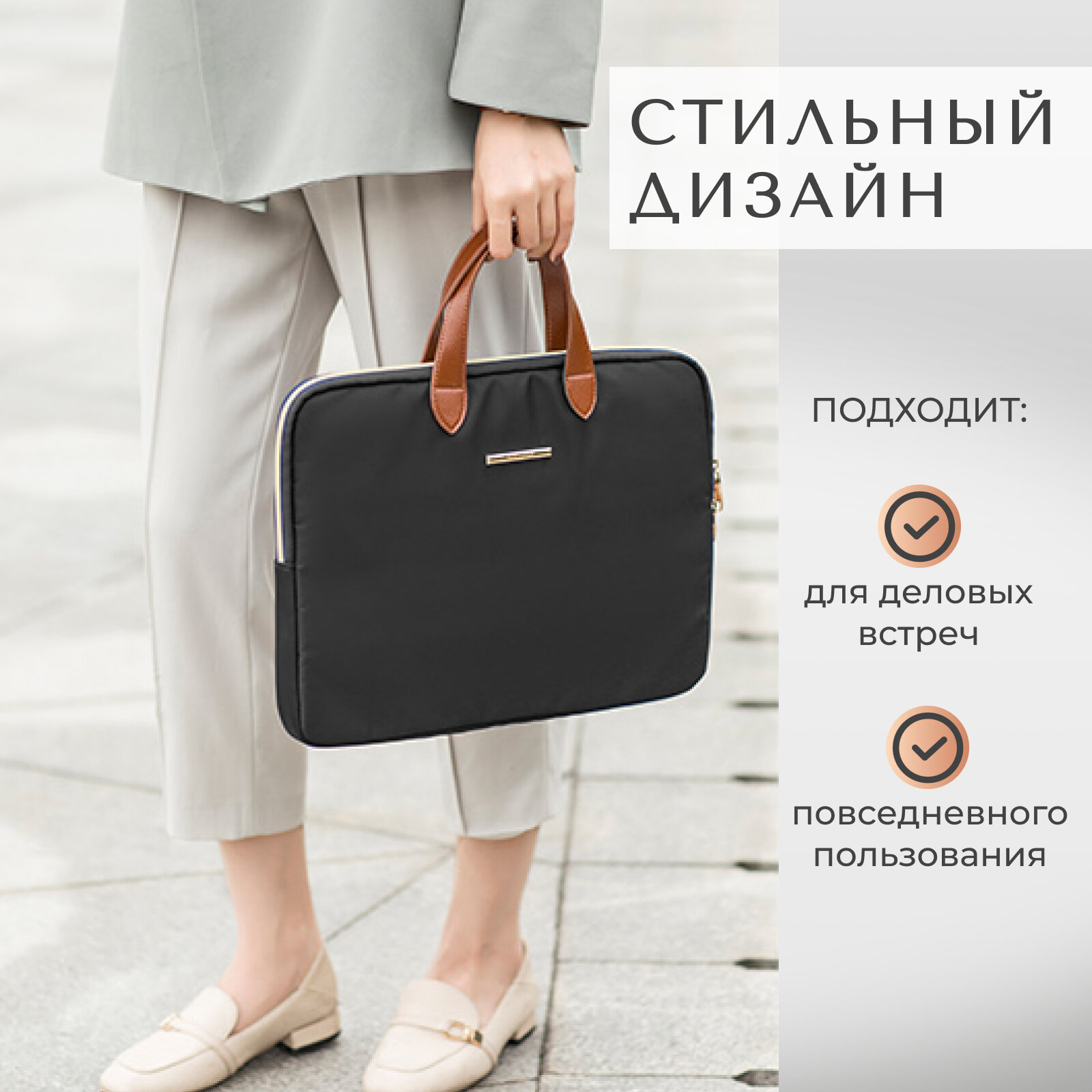 Сумка Buschnelke, полиэстер/экокожа, водонепроницаемая, для ноутбука, до 15,6", черная интересное: