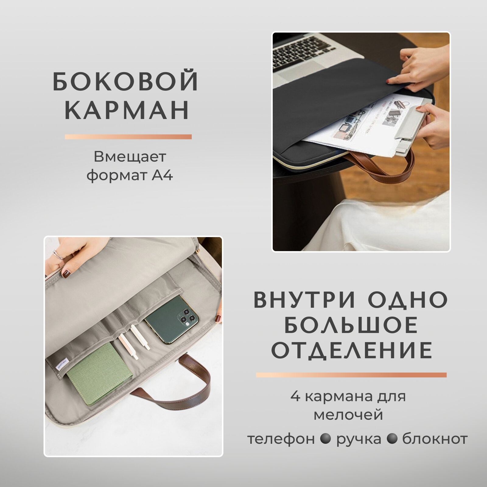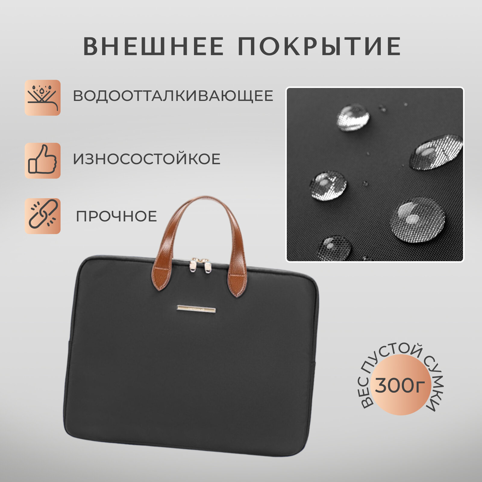 Сумка Buschnelke, для ноутбука, 15", водонепроницаемая, бежевая