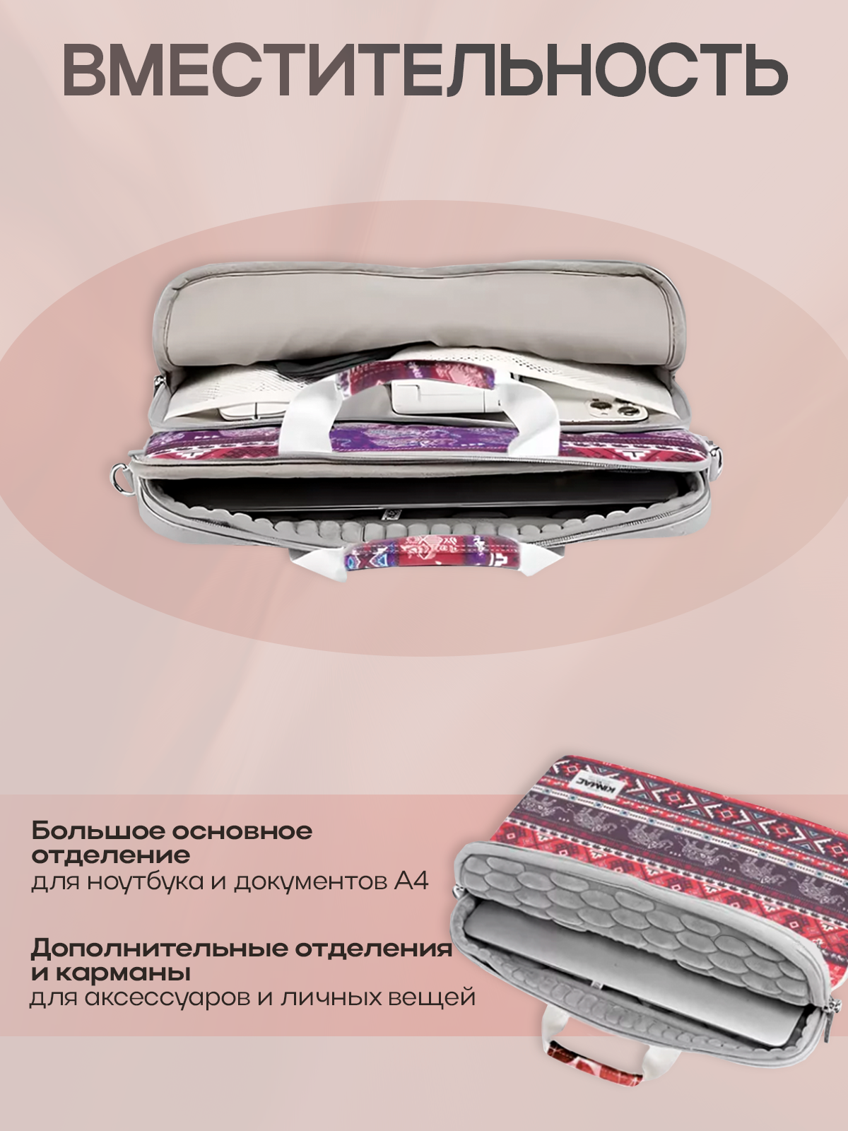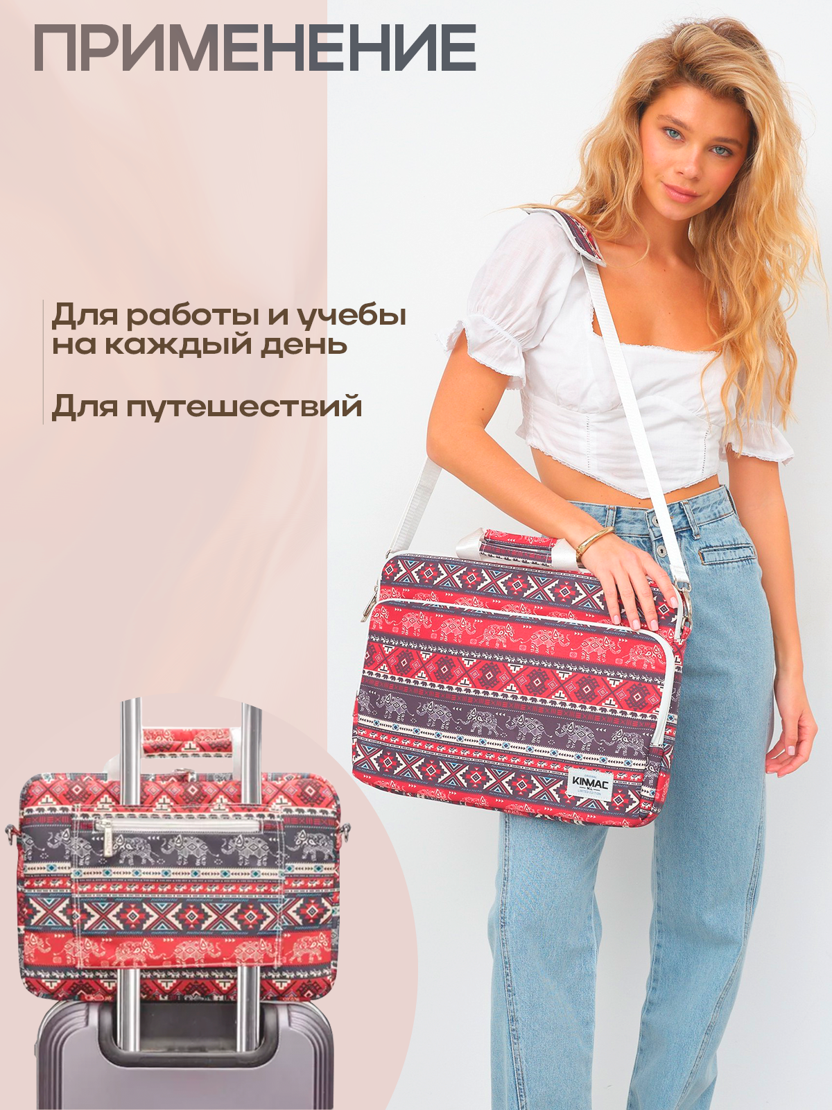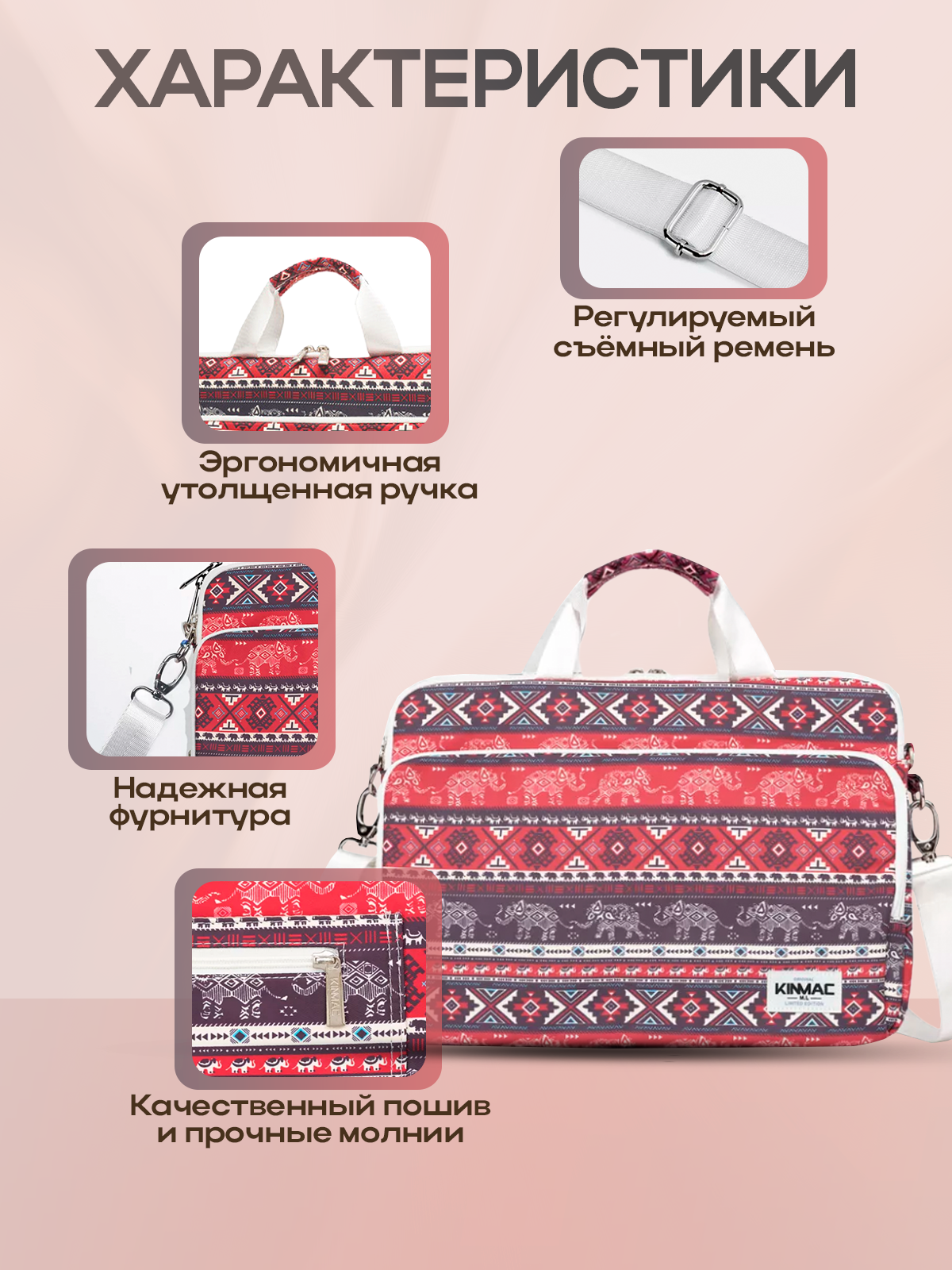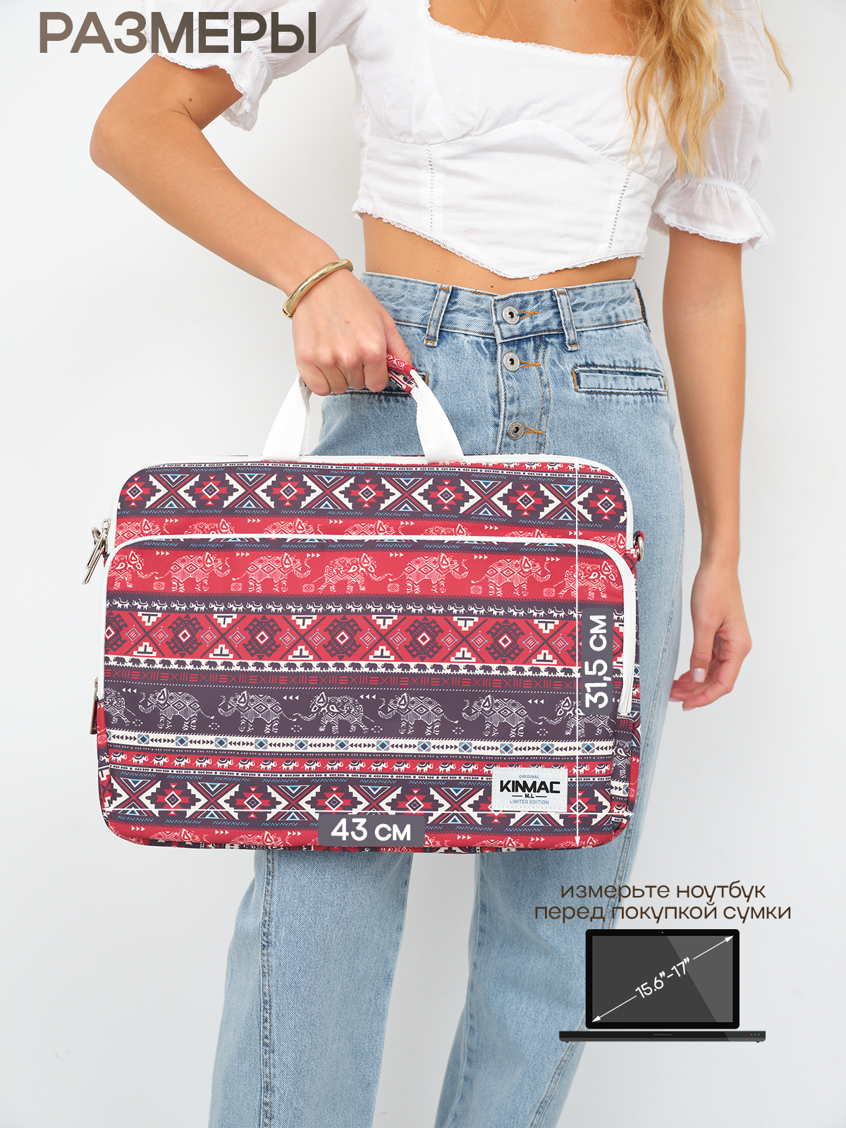 Сумка для ноутбука 15.6, 16 и 17 дюймов KINMAC с ремнем на плечо и большим карманом спереди (Слоны) интересное: