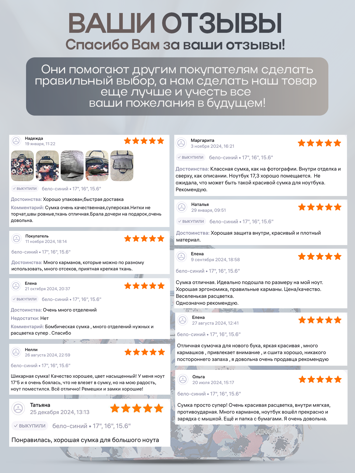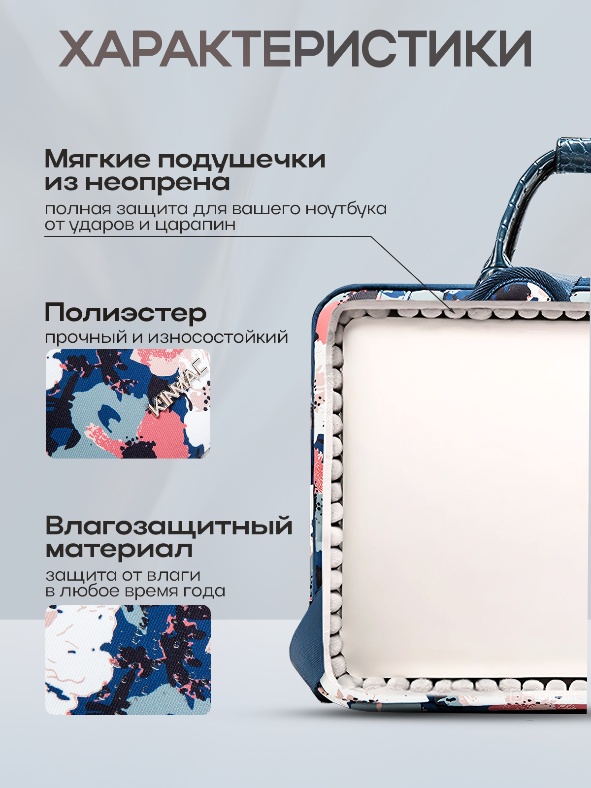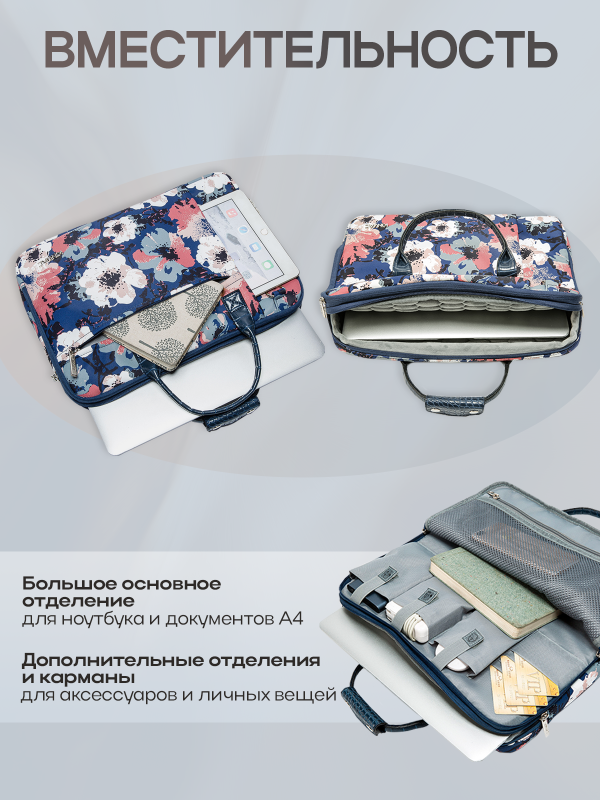 Сумка для ноутбука 15.6, 16 и 17 дюймов KINMAC с ремнем на плечо и множеством дополнительных кармашков (Цветы) интересное: