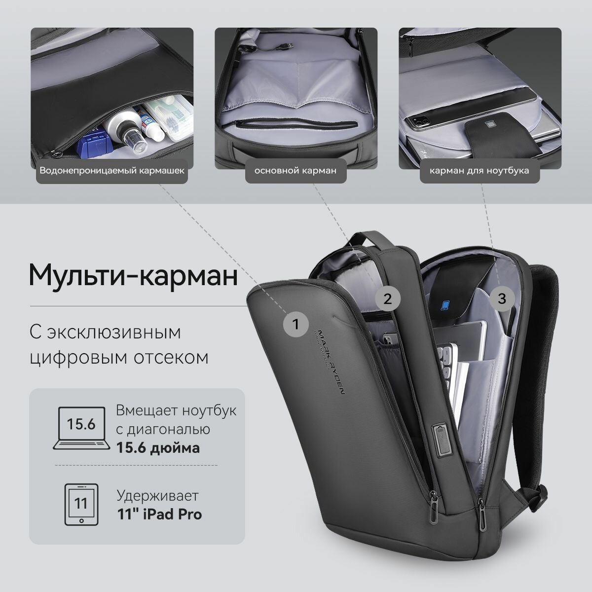 Рюкзак Mark Ryden, для ноутбука, городской, мужской, черный, 20 л интересное: