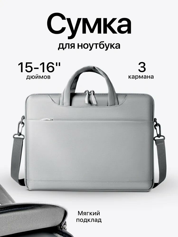 Сумка для ноутбука до 16 дюймов. Водоотталкивающая, противоударная с ремешком. интересное: