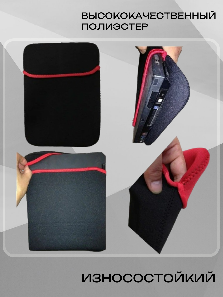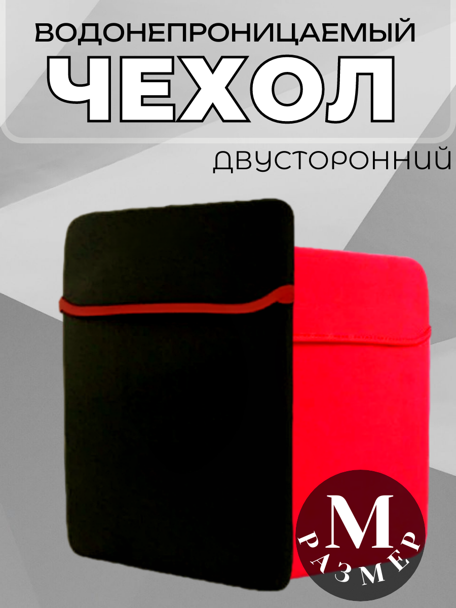 Чехол для ноутбука M, двусторонний, черный-красный, Vivacat. интересное: