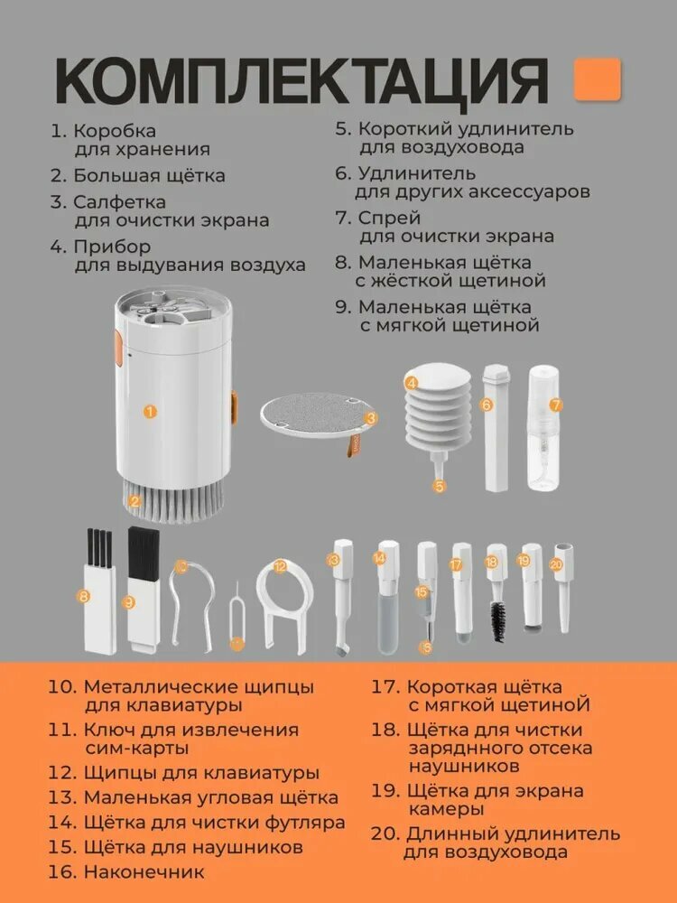 Универсальный набор для очистки гаджетов Baseus 20-in-1 интересное: