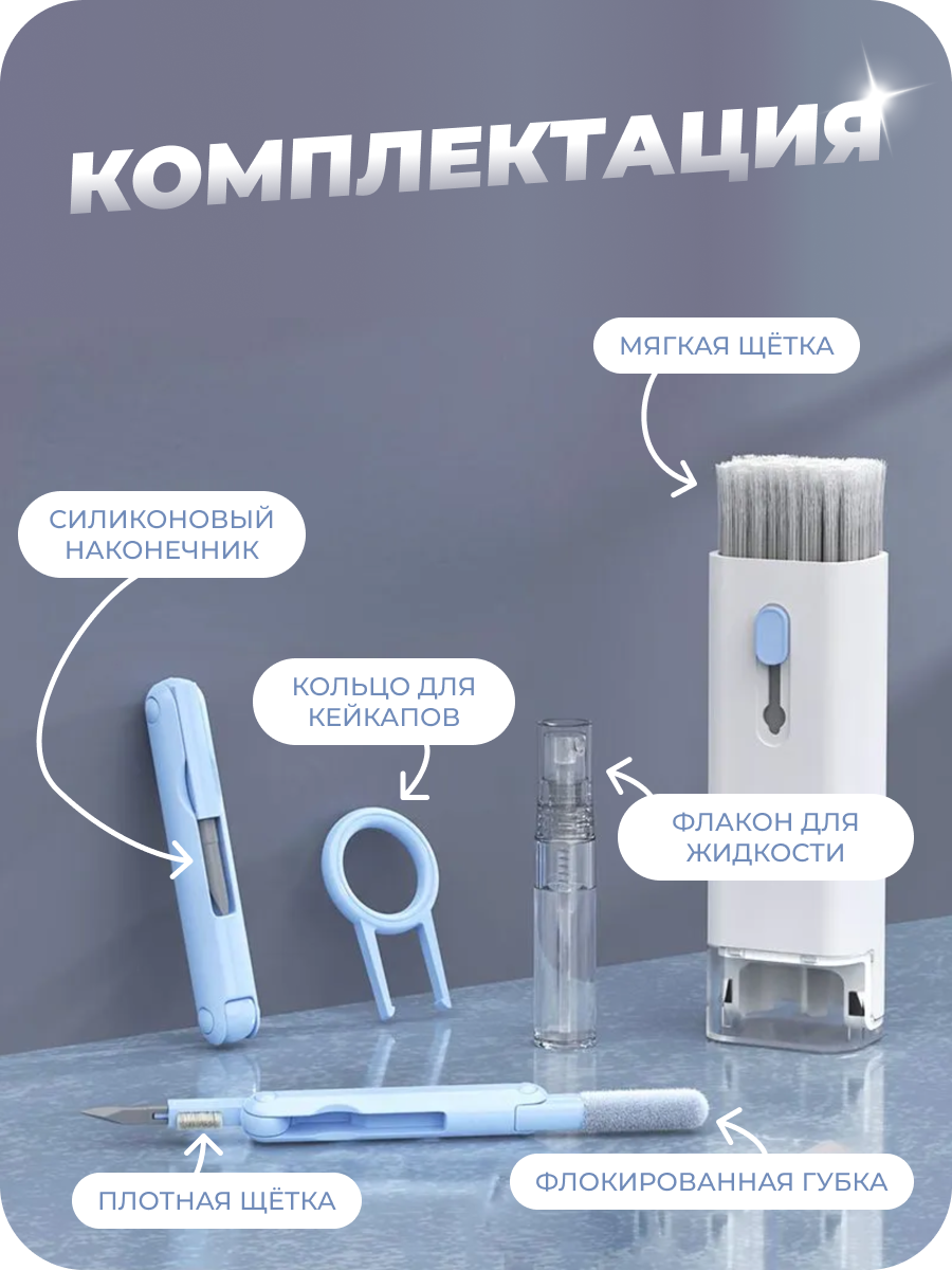 Набор для чистки гаджетов "Голубой", компактный, 7 предметов в 1 наборе. интересное: