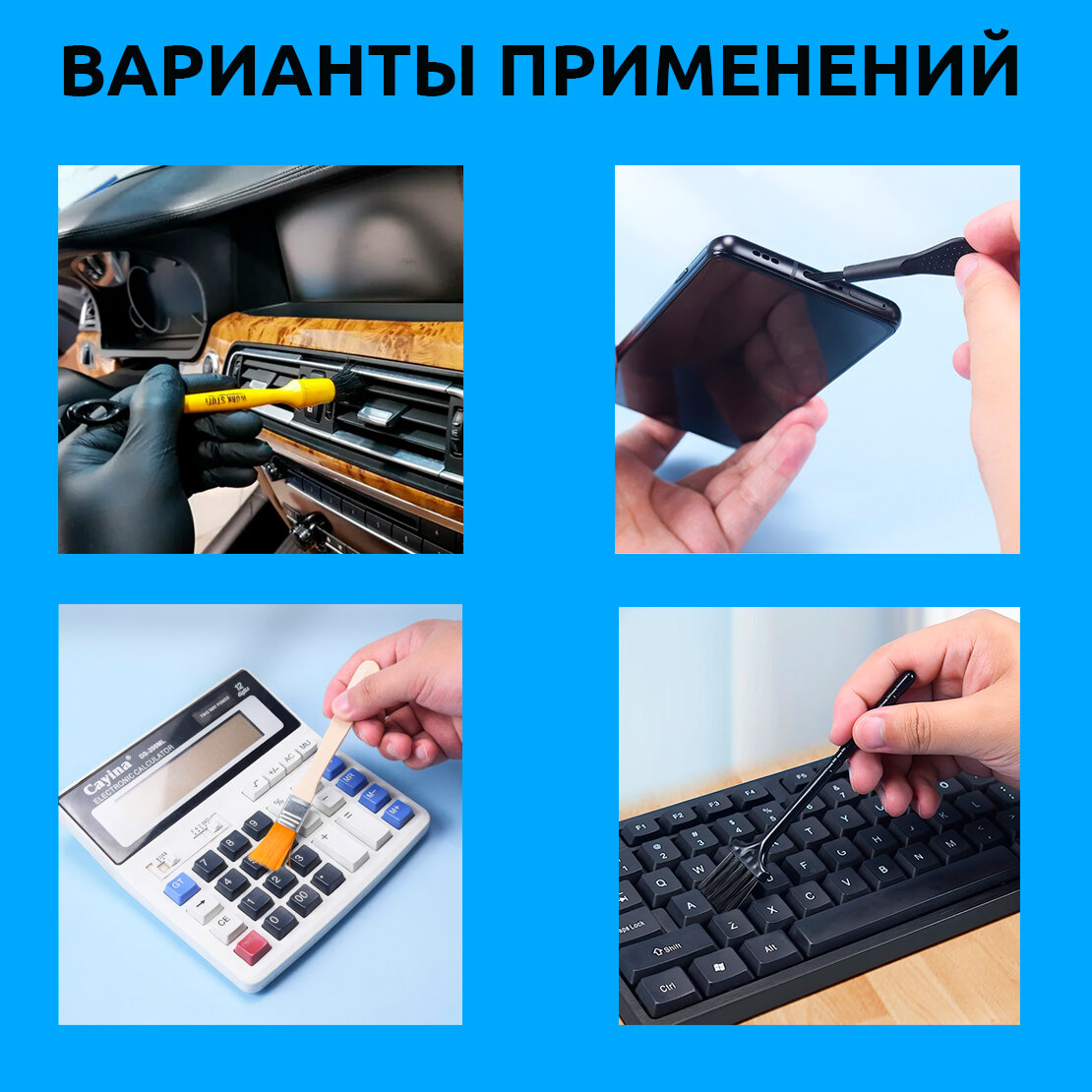 Набор кистей 10 штук для детейлинга / Чистки смартфонов, клавиатур, планшетов, фотоаппаратов, электроники, техники интересное: