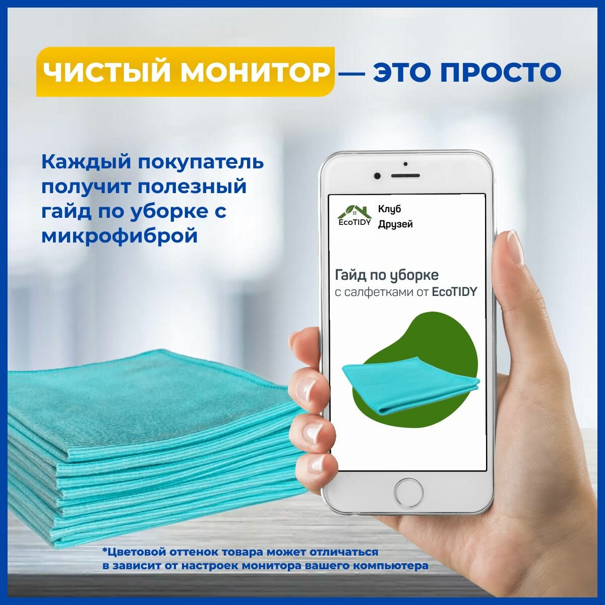 Салфетки микрофибра чистящие для экранов и мониторов, всех типов оптики, оргтехники, пластика EcoTIDY, 5 шт